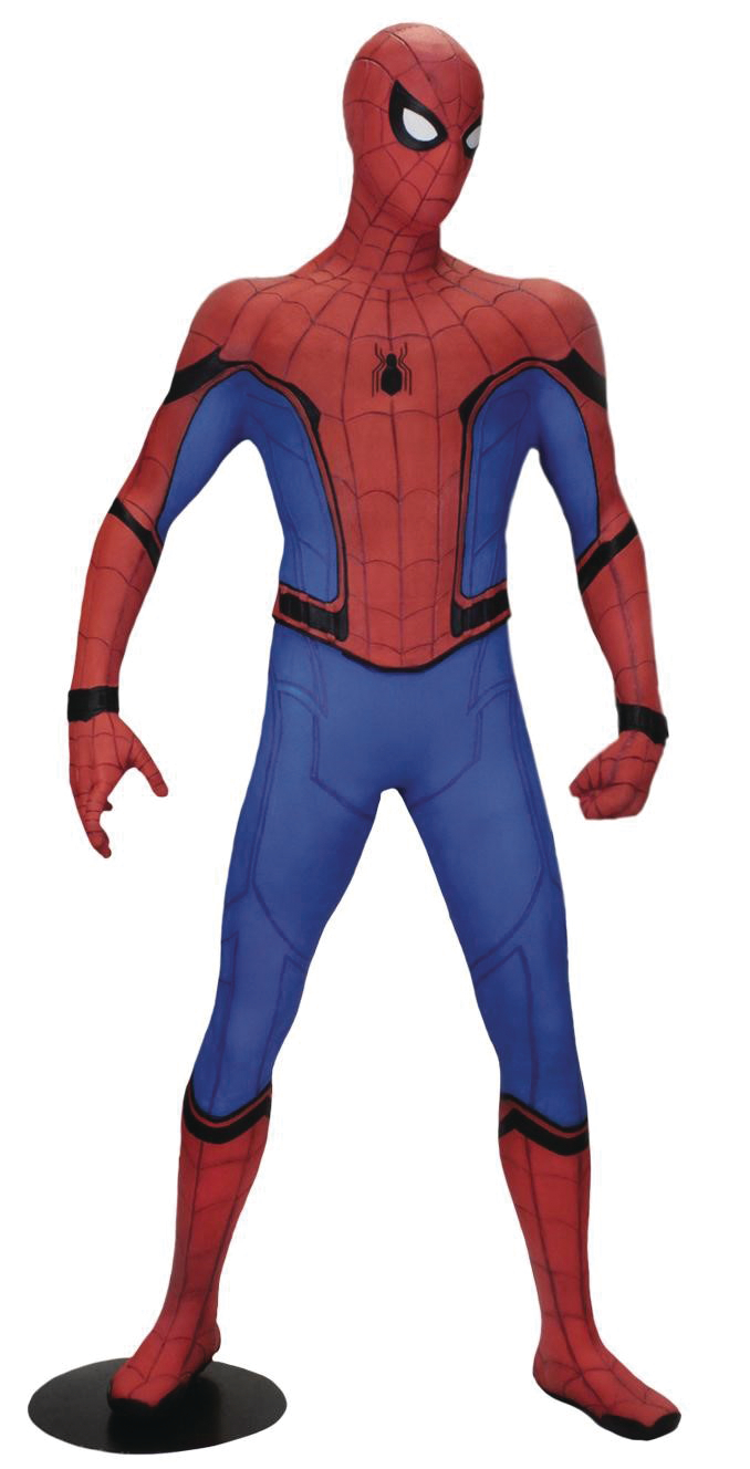 Spider-Man: Homecoming! This actual size foam replica figure is based on the new movie starring Tom Holland. Standing approximately 5' 8" tall, Spidey is made of foam rubber and latex that's carefully hand-painted for realistic detail! Perfect for retail decoration or advanced collectors. Ships in two boxes. Very simple assembly required; assembly and care instructions included.