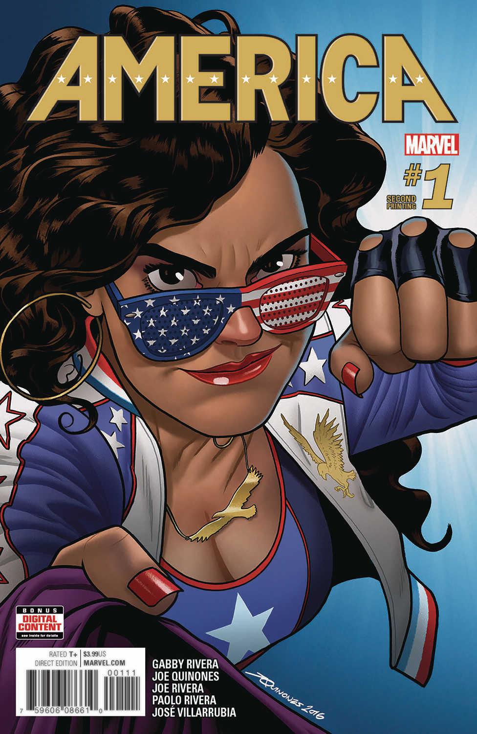 Written by critically-acclaimed YA novelist Gabby Rivera (Juliet Takes A Breath) and drawn by all-star artist Joe Quinones (HOWARD THE DUCK), Marvel Comics' brand new AMERICA series shines a solo spotlight on the high-octane and hard-hitting adventures of the one and only America Chavez!
