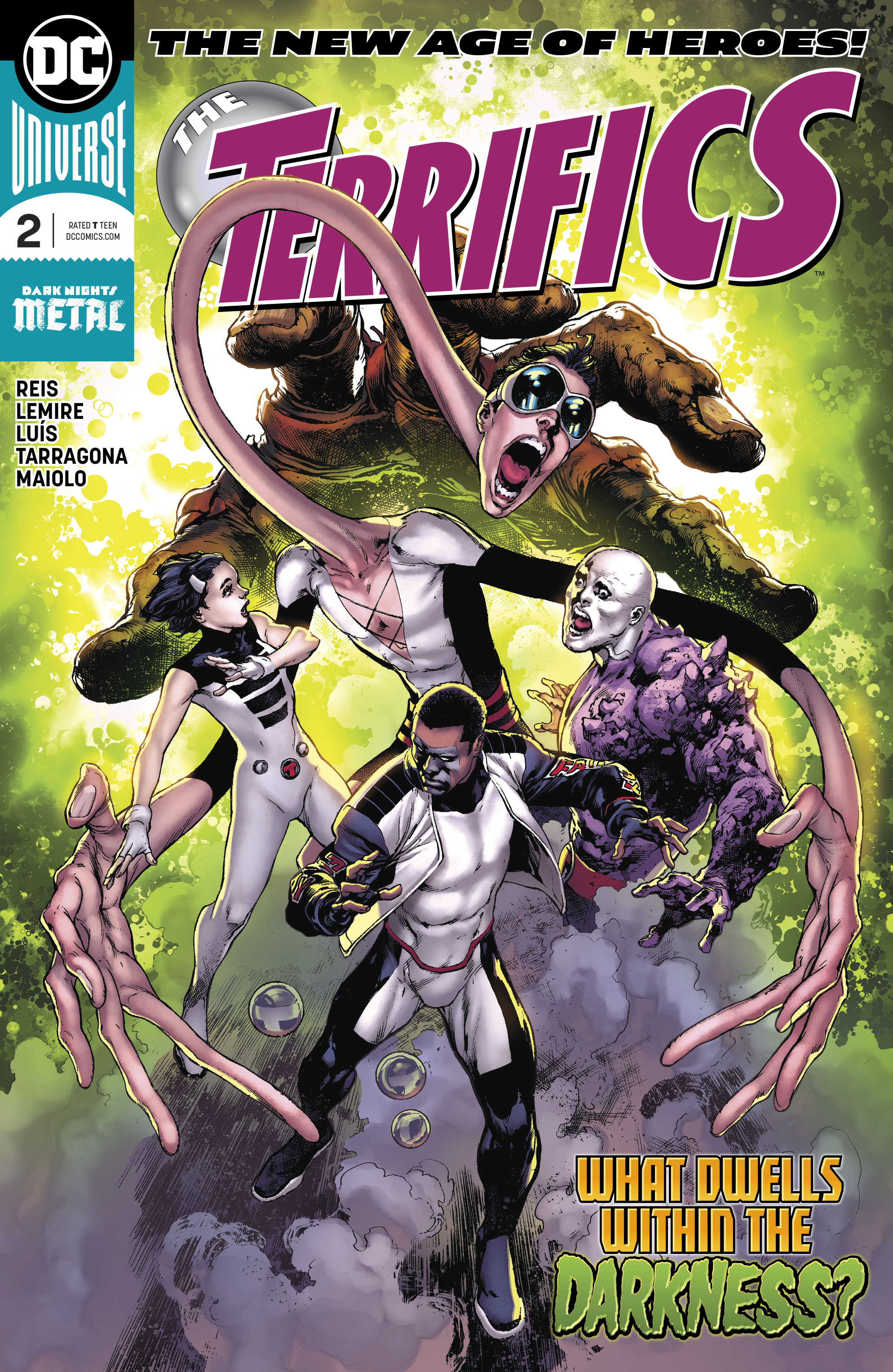 "MEET THE TERRIFICS" part two! Tom Strong has disappeared, and the Terrifics have found his emergency beacon! But to save anyone else, Mr. Terrific, Metamorpho, Phantom Girl and Plastic Man must first save themselves from the Dark Multiverse they're trapped within-not to mention the gigantic alien monster they've been standing on this whole time!