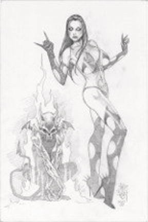 The deluxe lithoplate edition comes bagged and boarded, includes a copy of Tarot #109 (either cover A or cover B), and a black & white 6 1/2" x 10" lithograph of Raven titled "Conjuring." This limited collector's litho is pencilled by Jim Balent and comes signed by the artist. Limited to a printing of 500.