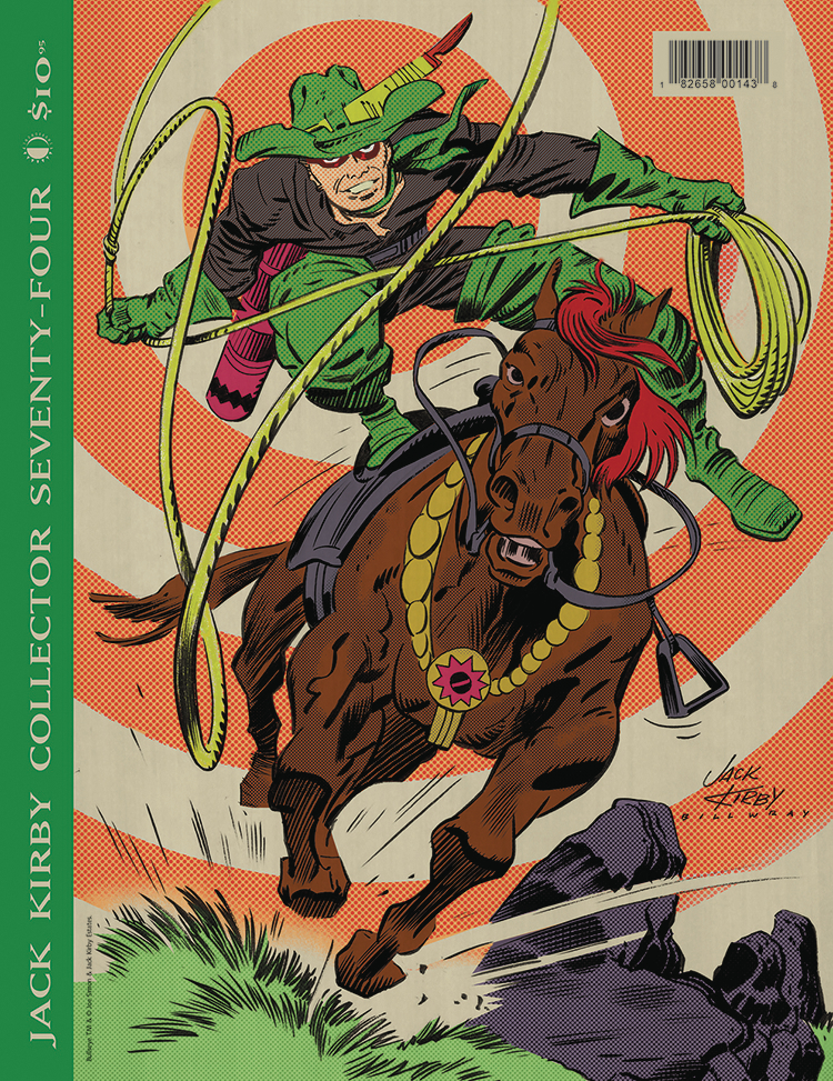 Jack Kirby Collector, the FUTUREPAST issue, featuring two different covers! Set course for "The World That Was," documenting Jack's work from Caveman days to the Wild West, behind a Kirby Bullseye cover inked by Bill Wray! And transport yourself to "The World That's Here" for Kirby's visions of the future that became reality, with a cover featuring his unseen Tiger 21 concept art! Whichever cover you choose, this issue spotlights both eras, plus an interview with Rascally Roy Thomas about Jack's work, a rare Kirby interview, Mark Evanier moderating the biggest Kirby Tribute Panel of all time, pencil art galleries, and more!