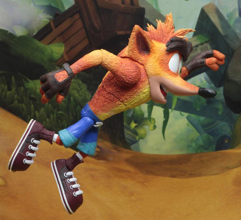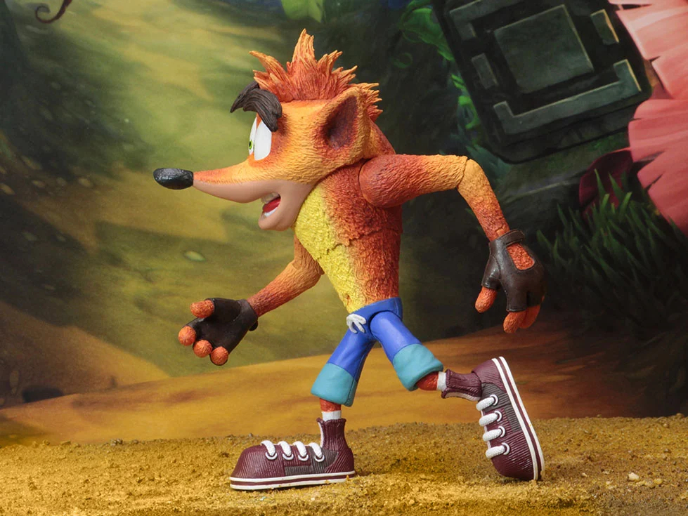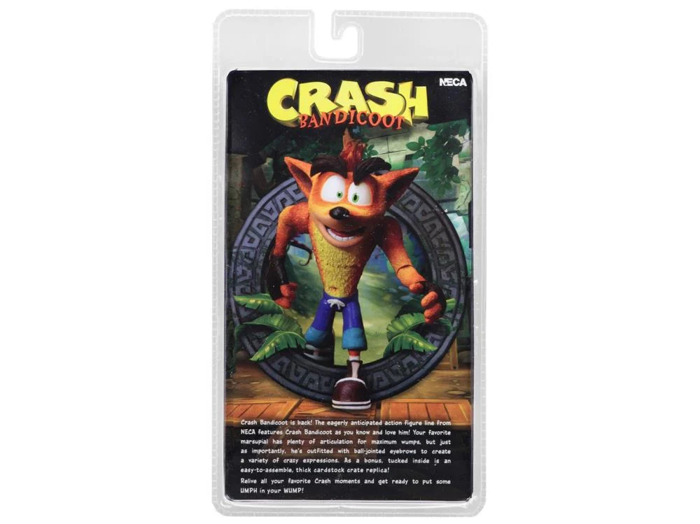 Crash Bandicoot action figures is Crash as you know and love him! This core figure stands 5 1/2" tall and features a head sculpt unique to this release. Crash has plenty of articulation for maximum wumps, but just as importantly, he's outfitted with ball-jointed eyebrows to create a variety of crazy expressions. As a bonus, tucked inside the clamshell packaging is a thick cardstock replica of a crate!
