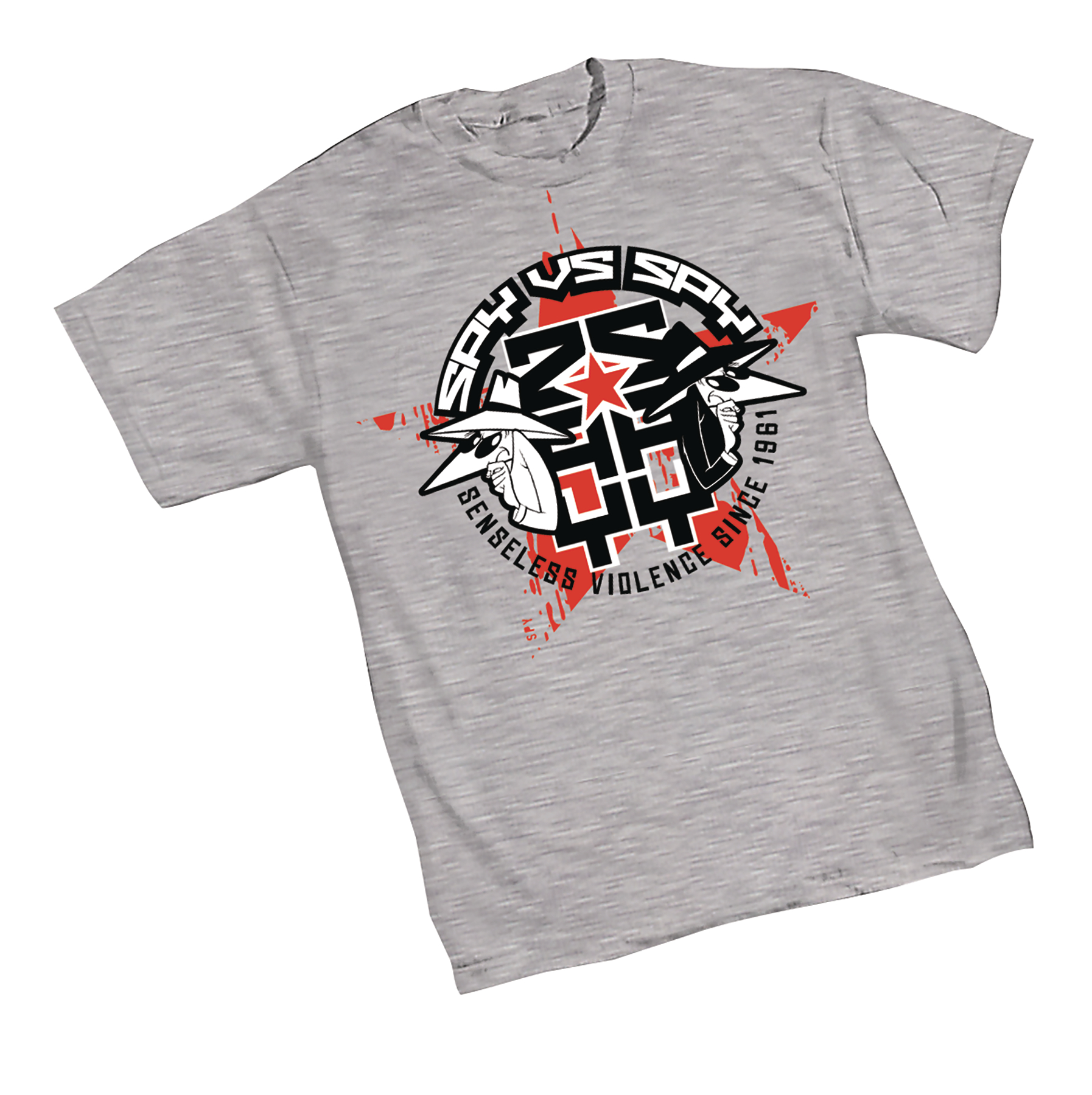 Senseless violence gets its moment in the spotlight on the new Mad: SvS Violence T-shirt. Features a multi-color design imprinted on a light steel. 100% cotton tee. Spy vs Spy showing us the way since 1961!!