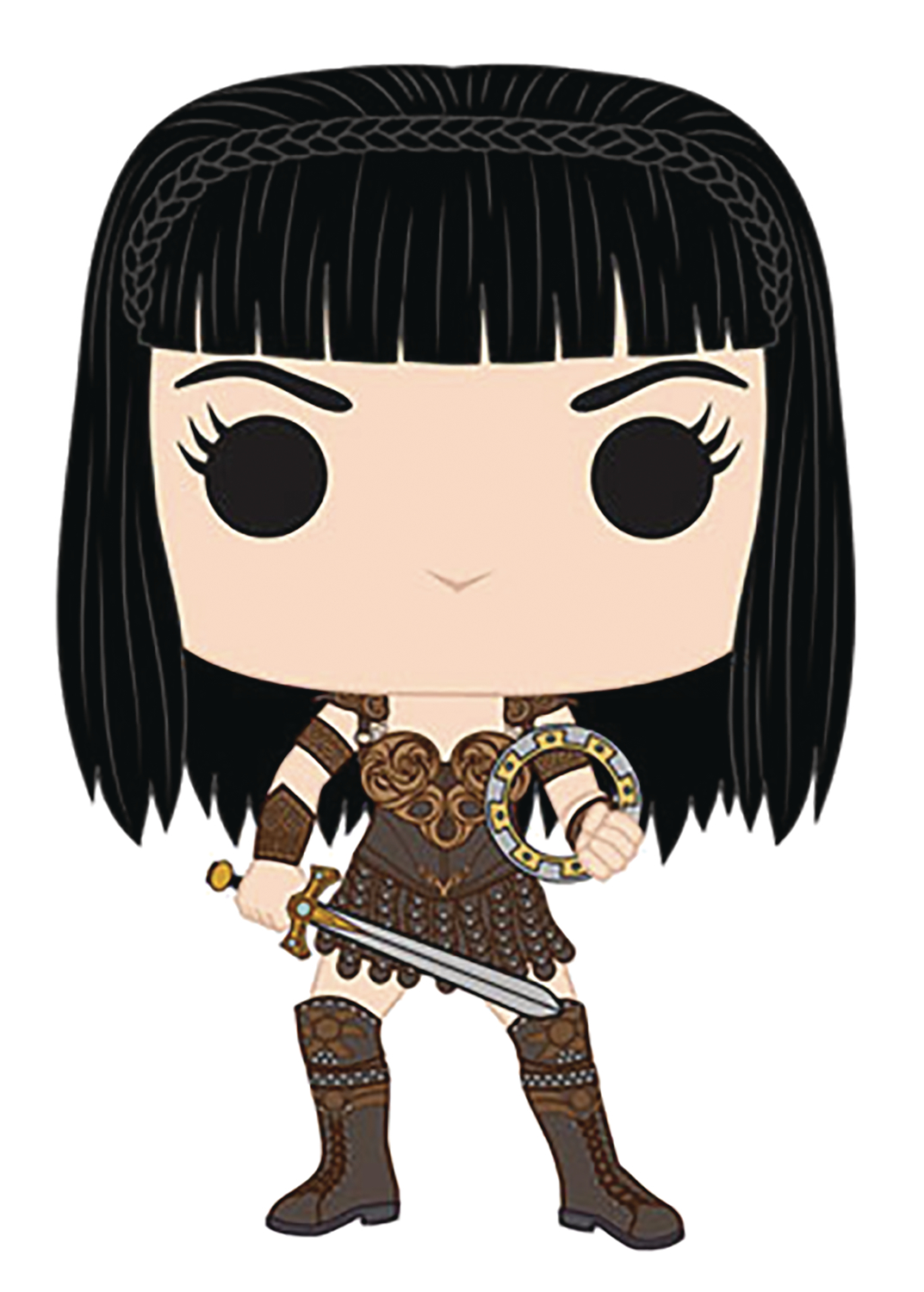 Xena, the formidable warrior princess whose adventures entertained audiences for six seasons and 134 episodes. Wearing her usual armor and wielding a sword and her signature Chakram, Pop!