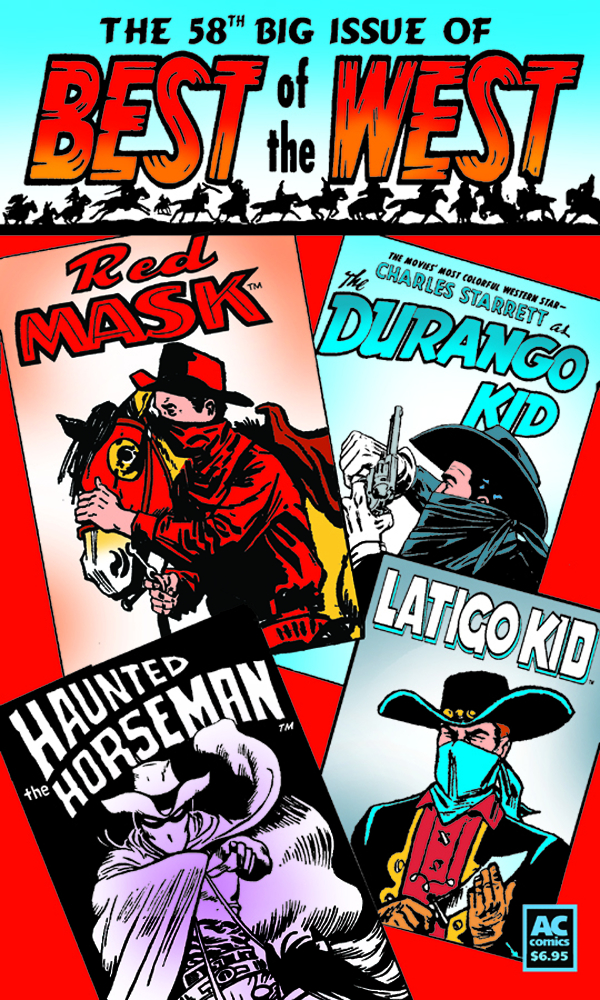 In this issue: The Haunted Horseman aides "The Scarecrow Sheriff!" by Dick Ayers; The Durango Kid uncovers "Crooked Irons!" by Joe Certa; Redmask acts out a dangerous play in "Terror's Theater!"; Lone Rider heads into "Big Trouble!"; and gal sheriff Kitty Carson in a "Search for Gold!" All this, plus The Latigo Kid!