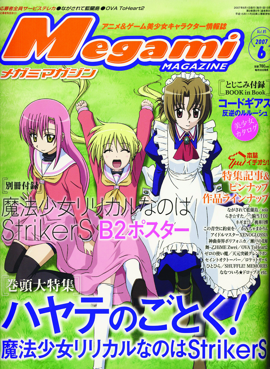 Megami is the best Japanese anime magazine for tons of free giveaways, as well as full-color artwork and posters! Includes telephone cards, punch-out "character stands," stickers, and much more! Japanese text.