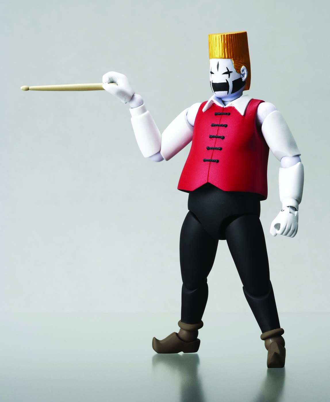 "Revoltech Joint" (or "Revoltech") is an innovative joint system that allows figure to demonstrate any kind of realistic pose. "Camus," is one the character based on a Japanese manga known as "Detroit Metal City" created by Wakasugi Kiminori. Camus is one of the musician/metal band member of "Detroit Metal City." The figure is 5-6" tall and has 42 articulation points with 14 joint parts. "Revoltech DMC - Camus" comes equipped with interchangeable accessories and parts (1 lyric bubble/balloon, 1 DMC sign board, 2 drumsticks, 2 Cobra drumsticks, 3 optional hands and 1 display base).