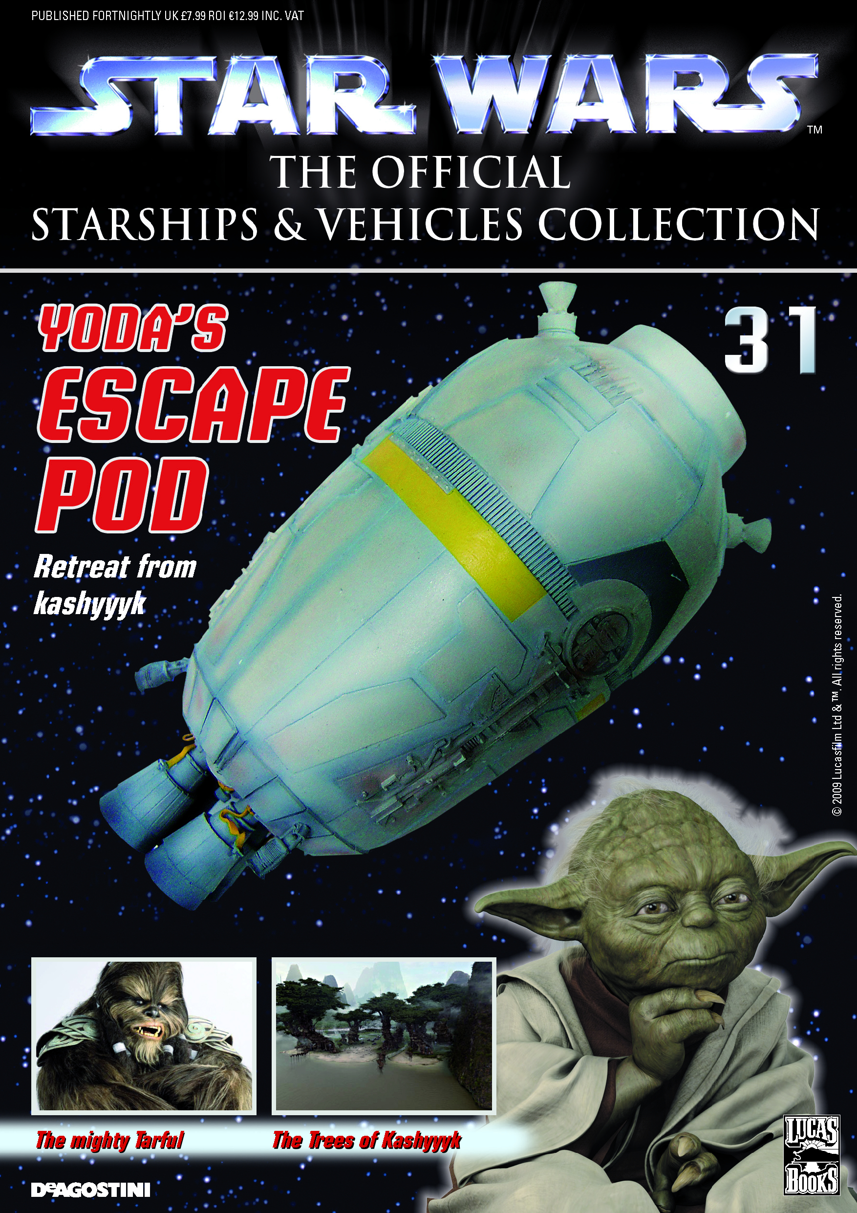 The Star Wars: The Official Starships and Vehicles Collection Magazine brings fans superbly detailed painted metal models of the most amazing starships and land vehicles from George Lucas' mythic Star Wars films. Each comes with a copiously illustrated magazine that relates the history of the vehicle, its pilots or crew, and full technical specifications. Readers will also uncover information on the other fascinating craft from the Expanded Universe of the novels and comics, plus the inside story on the making of the films. Choose from the Star Destroyer (#5), Jabba's Sail Barge (#6), Escape Pod (#31), or the Republic Attack Cruiser (#32)! Copyright 2009 Lucasfilm Ltd. All Rights Reserved. Used Under Authorization.