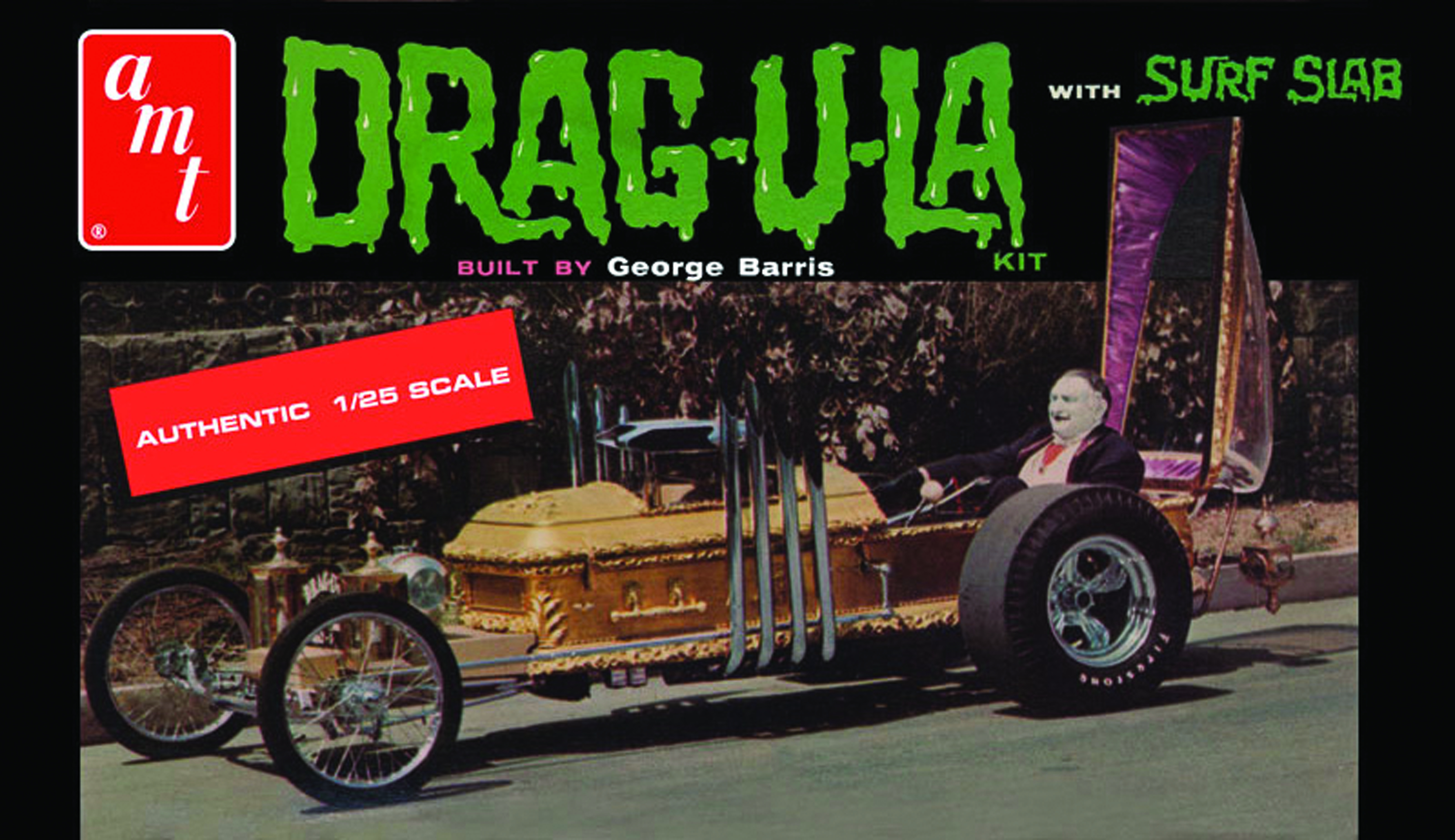Herman Munster and Grandpa tooled around town in their classic cars, the Munster Koach and the Drag-U-La, designed by none other than the legendary George Barris. Now these classic Munsters roadsters are available once more in two model kits from Round 2. Fans of The Munsters and classic model kits will appreciate these models. Each 1/25-scale model kit, the Munster Koach and the Drag-U-La, comes with a miniature driver ready for a day out on the road - Herman or Lily for the Koach, Grandpa or Eddie for the Drag-U-La. Some assembly required.