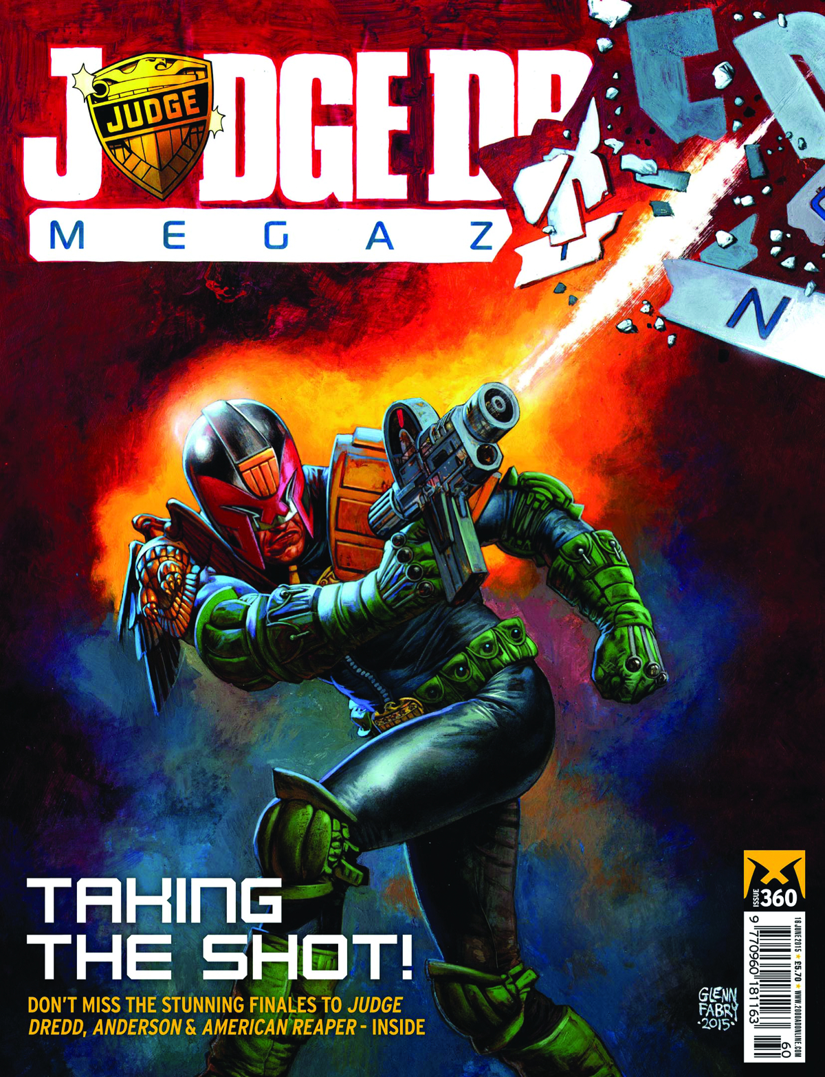 More action and adventure in the future-shocked world of Judge Dredd! Dredd and the mysterious El Maldito team up, courtesy of Gordon Rennie and Carlos Ezquerra; Psi-Judge Lillian Storm takes a squad into a Brit-Cit block gripped with mania in