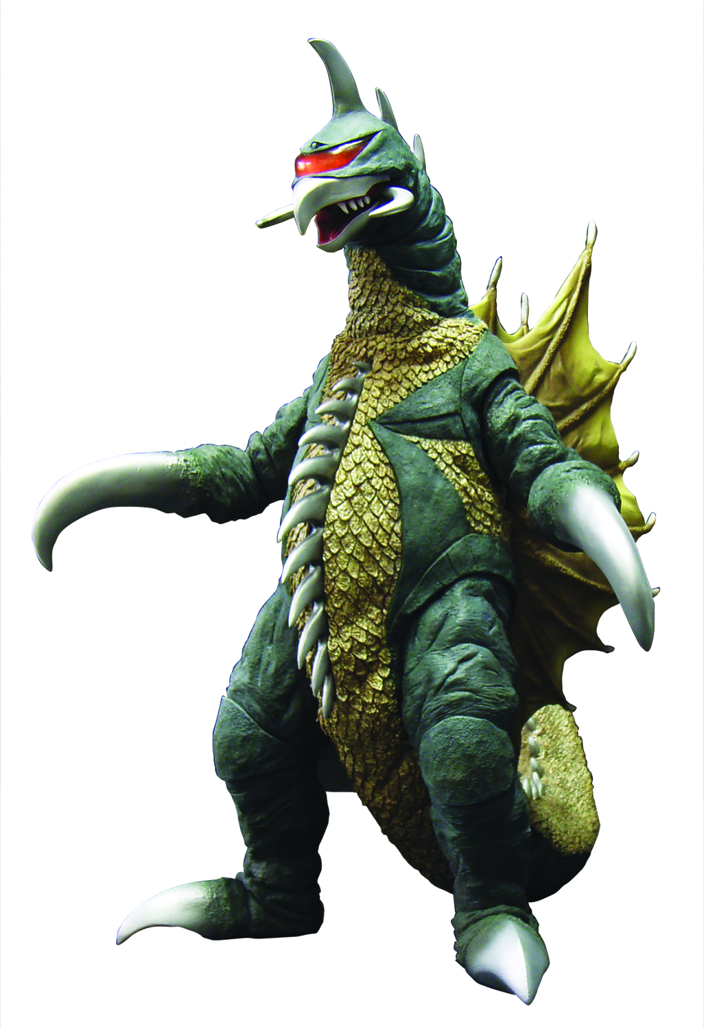 From Plex. A PREVIEWS Exclusive. A cybernetic creature from outer space, Gigan is a powerful foe for Godzilla due to his abdominal buzzsaw and sharp metallic hooks. Debuting in 1972's