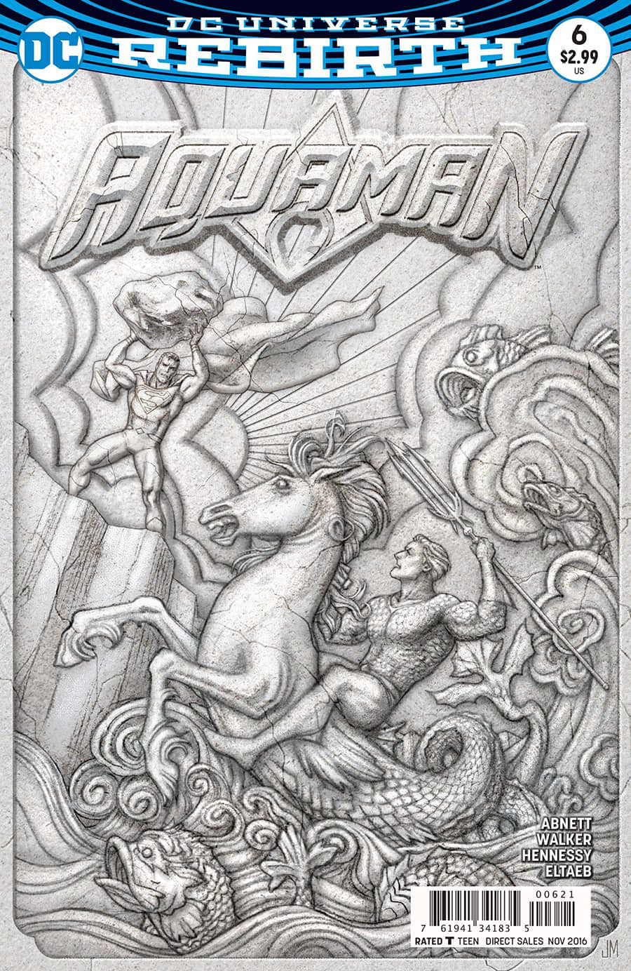 "THE DROWNING" conclusion! As this first epic concludes, Aquaman and Mera are on the run for a crime they didn't commit. They've fought through every kind of firepower the U.S. military has thrown. Now all that's left between them and Atlantis is the Man of Steel...
