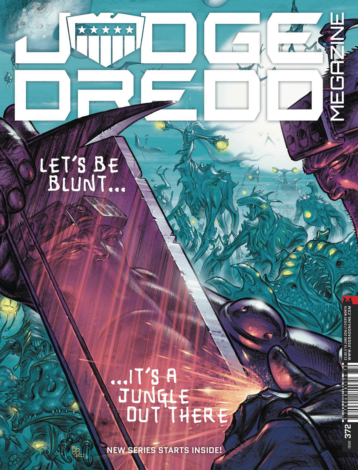 Dredd story, "Monkey Business" by Arthur Wyatt and Jake Lynch; the planet claims more victims in