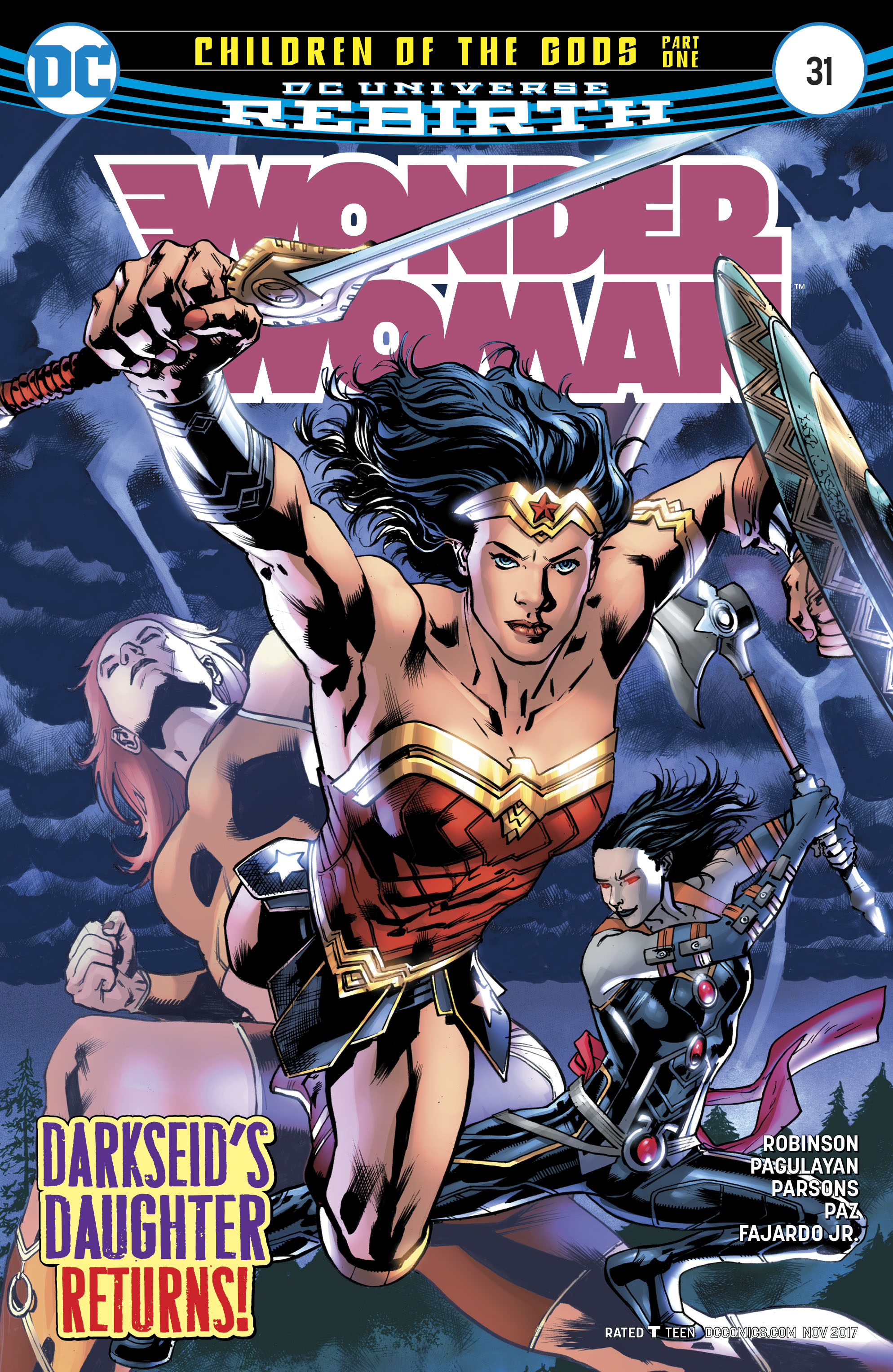 "Children of the Gods" part one! Spinning out of the pages of DC UNIVERSE REBIRTH and JUSTICE LEAGUE: DARKSEID WAR, legendary writer James Robinson (JSA: THE GOLDEN AGE, STARMAN) comes on board to answer one of the biggest questions of the year: Who is Wonder Woman's brother? Taken away from Themyscira in the dead of night, the mysterious Jason has been hidden somewhere far from the sight of gods and men...but his life and Wonder Woman's are about to intersect in a terrifying way, bringing them face to face with a cosmic threat they never imagined! Don't miss the start of the next great Wonder Woman epic!