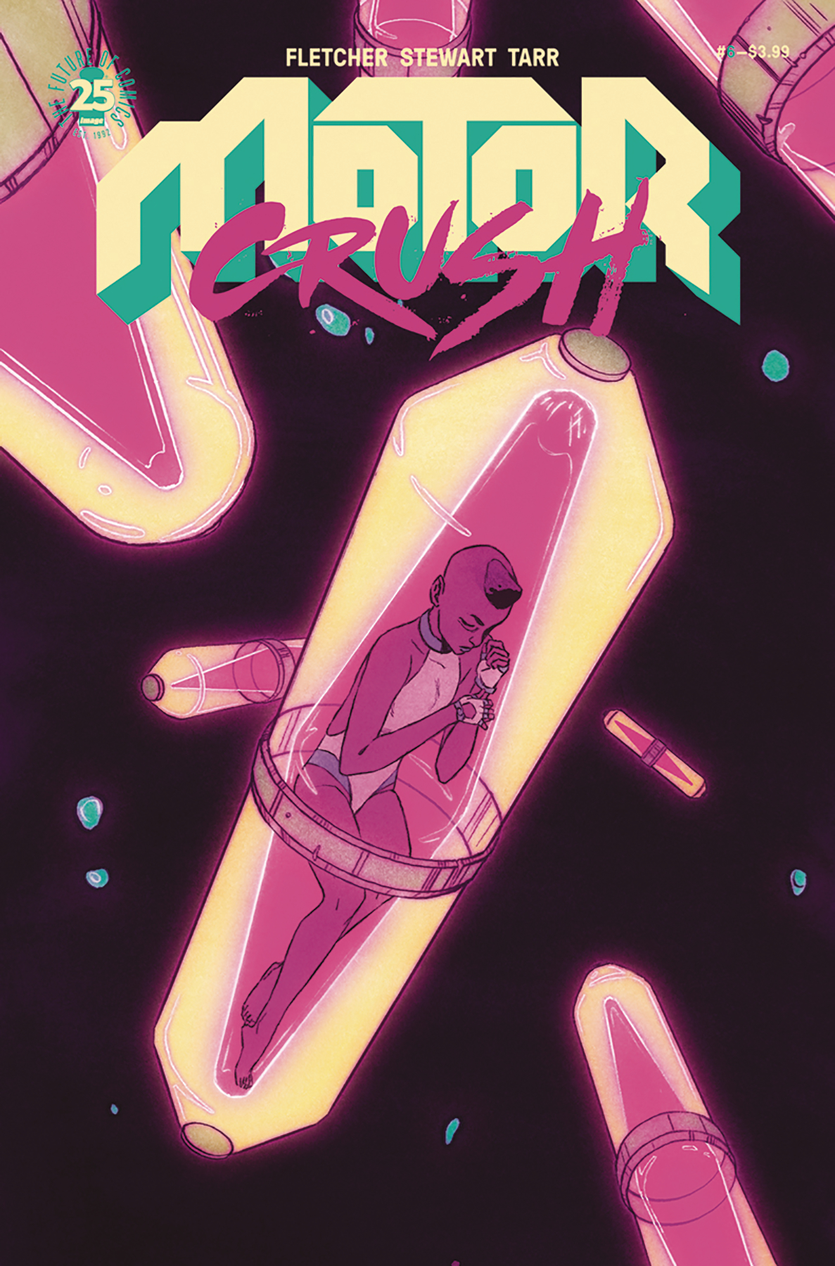 NEW STORY ARC! The critically acclaimed series returns with a new 6-issue arc, kicking off with a special story guest-illustrated by co-creator CAMERON STEWART, and featuring four breathtaking covers by fan-favorites BABS TARR, KRIS ANKA, JAKE WYATT, and KEVIN WADA! While Domino Swift struggles to comprehend her jump forward in time, we cycle backwards to learn more about her father's former racing career, the story of his missing leg, and his secret connection to the machine narcotic Crush.