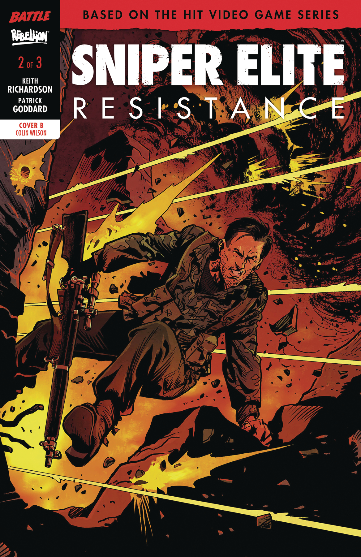 Based on the global bestselling Rebellion videogame, Sniper Elite: Resistance! Karl Fairburne becomes caught in a deadly game of cat and mouse as he's hunted through the streets of Occupied Angouleme by the Nazis. With just one bullet to save him, can he escape? Scripted by Keith Richardson and illustrated by Patrick Goddard, with two covers by Goddard and Colin Wilson!