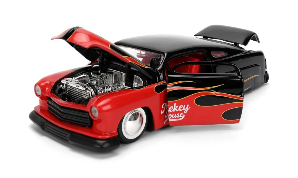 From Jada Toys. Get ready to cruise into the world of Disney with the Jada 1:24 Hollywood Rides Vintage Mickey and 1951 Mercury! This die-cast collectible features the beloved Mickey Mouse in his timeless, vintage style, standing proudly next to a beautifully detailed 1951 Mercury Coupe.