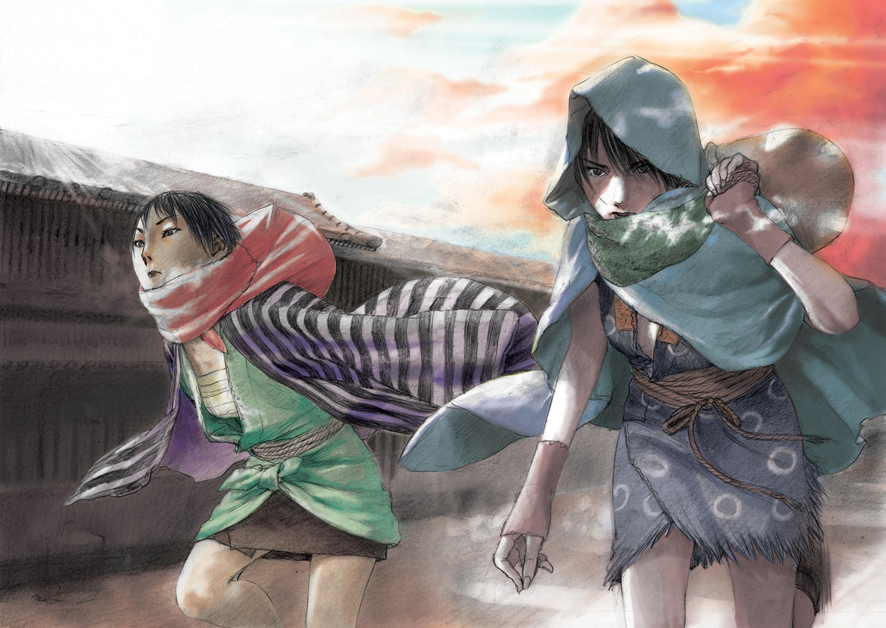 The "Badger Hole" is a tunnel of death that leads into the bowels of Edo Castle, where Kagimura and Burando have been killing scores of prisoners in their attempts to transfer and duplicate the "kessen-chu immortality effect" that runs through Manji's veins. Mutilated body after body has been dragged out of the "Badger Hole" by prison guards and beggars, as most of the immortality experiments have been failures. Rin and D a begin a reckless descent into this darkness, hoping to find their captive friends, Manji and Isaku. The girls are reckless, indeed, but they're not going without a few new tricks up their sleeves!
