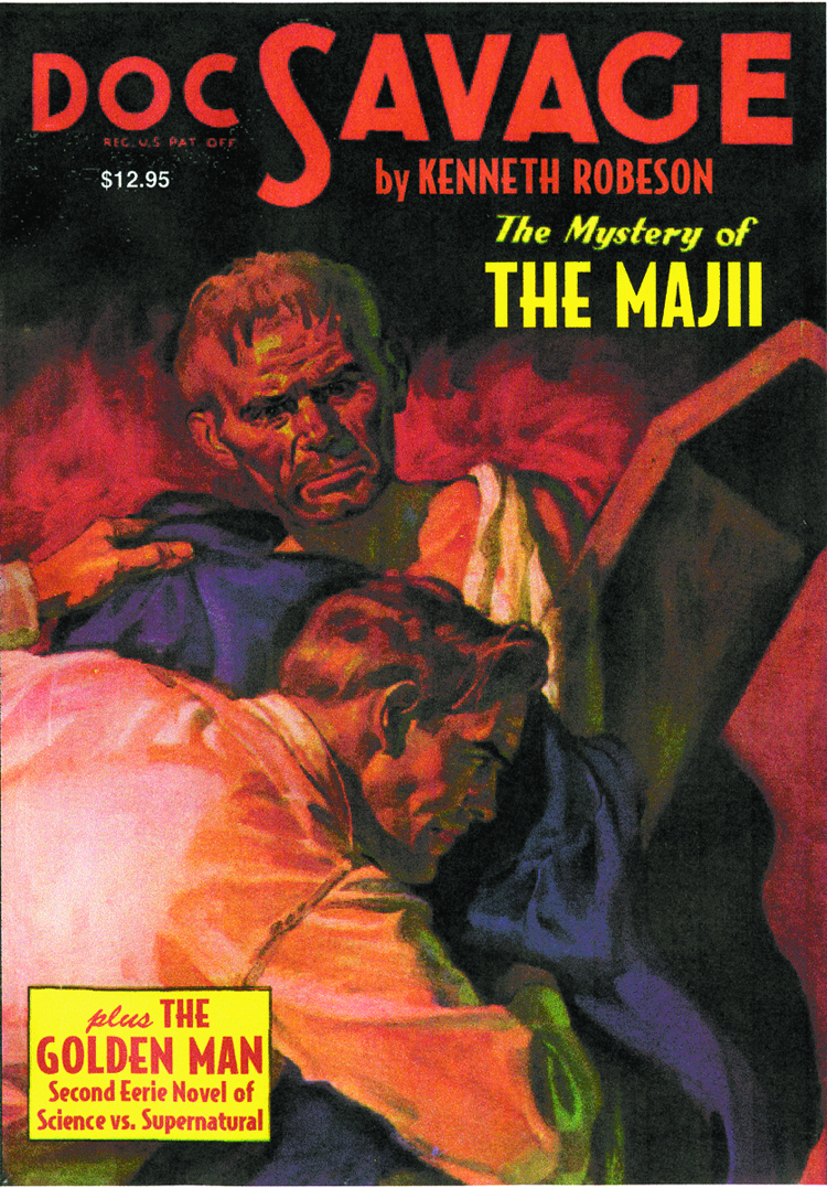 The pulps' legendary superman battles evil in two exciting adventures by Lester Dent writing as Kenneth Robeson. In "The Majii" (1935), a living dead man lures Doc Savage into an Aladdin's cavern of horror. Then, "The Golden Man" tests the scientific wizardry of the Man of Bronze, exposing deep secrets of Doc Savage's strange origins.