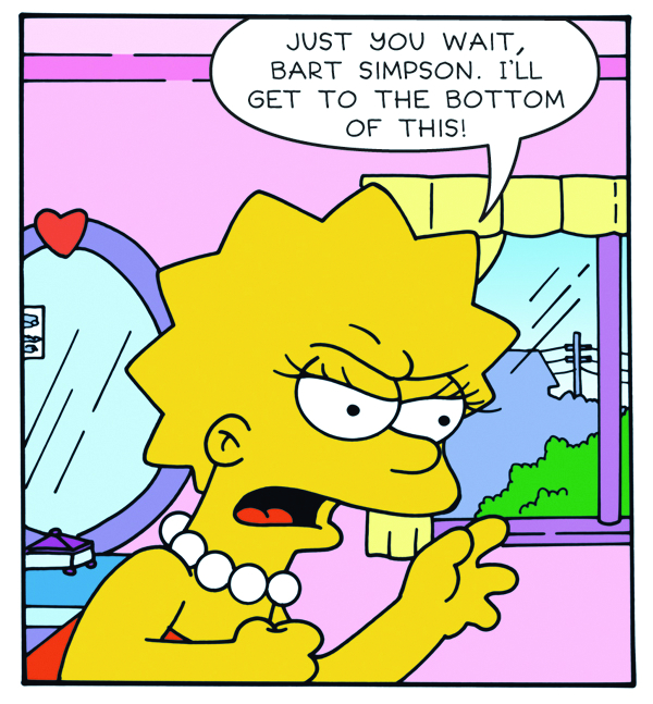 Bart Simpson Comics. First up, Lisa gets even with Bart when he threatens her most cherished form of artistic expression - the saxophone. Then Lisa tries to be one of the girls with Sherri and Terri with mixed results. And finally, after a moment of uncensored exasperation, Lisa finds herself under the tutelage of an unexpected and unexpurgated authority figure, Lunchlady Doris! Back off, Bart! Lisa's taking the lead this August!