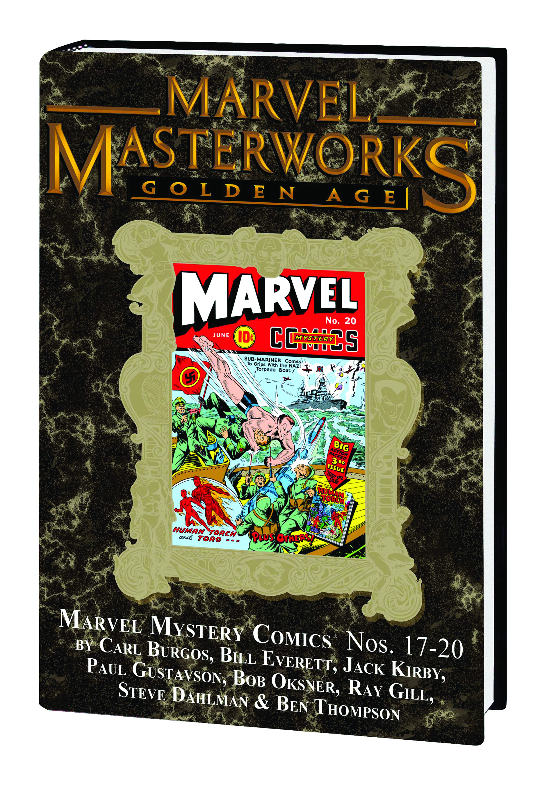 The greatest comic magazine of the Golden Age returns with the Marvel Masterworks! Headlining the heavy-hitters of the Timely era, Marvel Mystery Comics has it all-from top-of-the-field super hero action to bizarre mystery, otherworldly noir, jungle adventure and boy detectives! And it all starts off with the history-making Human Torch/Sub-Mariner team-up by the titanic talents Carl Burgos and Bill Everett! Then the Human Torch's sidekick Toro, the Flaming Kid, makes his Marvel Mystery debut. Prince Namor, the Sub-Mariner, takes his uniquely anarchic brand of action straight to the Nazis' noses, while the Angel's origin is revealed and he begins a multi-part crusade against the sexy villainess, the Cat's Paw. Rounded out by Jack Kirby's eerie agent of vengeance, the Vision; the wonderfully weird Electro; Terry Vance, School Boy Sleuth; and the adventures of Ka-Zar, it's the classic package that made Marvel famous! Collecting MARVEL MYSTERY COMICS #17-20
