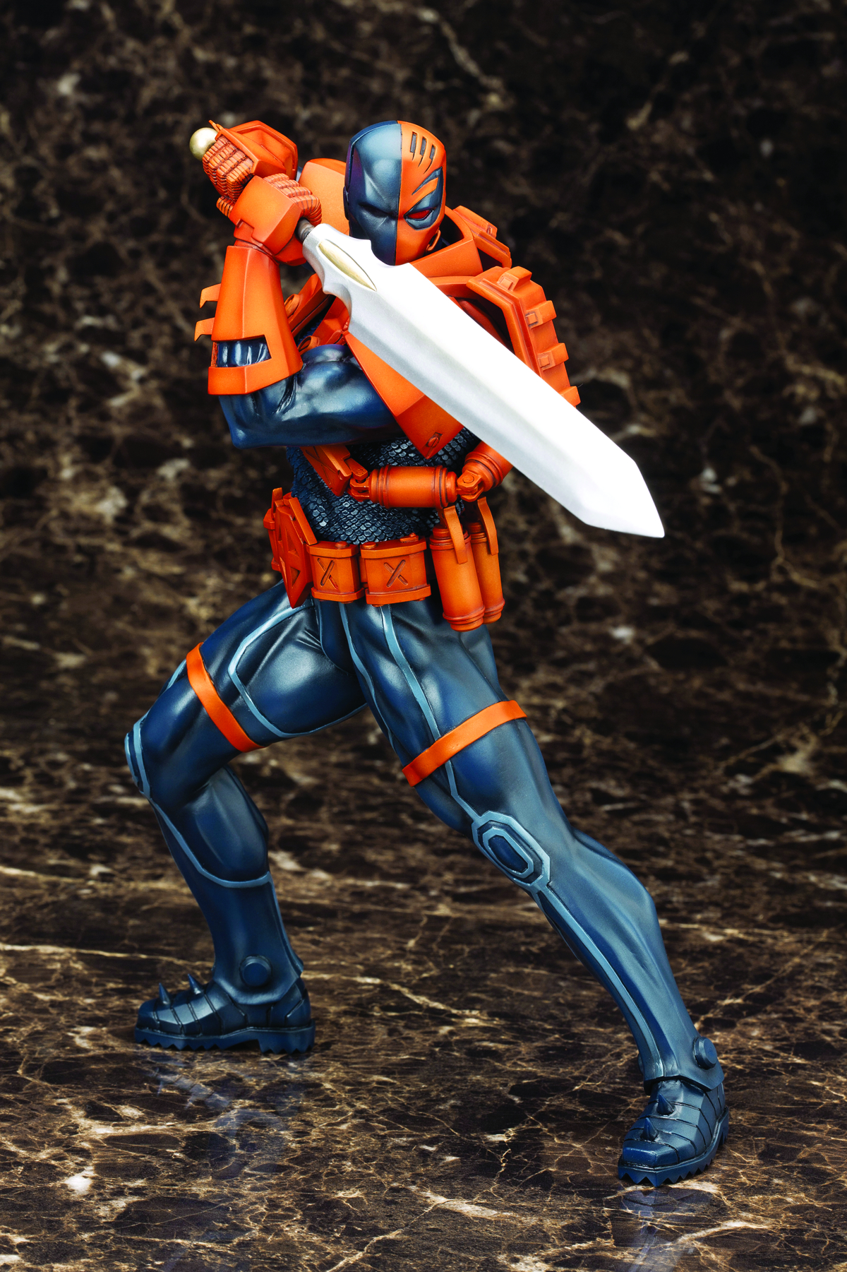 A KOTOBUKIYA Japanese import! Kotobukiya has created several fantastic ARTFX Statues based on DC Comics characters, but there haven't been any from the current "New 52" relaunch... until now. Slade Wilson was a member of the United States Army chosen for advanced training due to his peak physical condition and strength of will. He was also experimented on by the very same government he fought for, and with the enhancements they gave him became a mercenary and assassin. As one of the most dangerous men in the world he goes by the name of DEATHSTROKE! Appearing in his own comic as part of DC's New 52, the character was re-introduced to the world with an updated costume but the same hardcore attitude and superhuman weapons mastery.