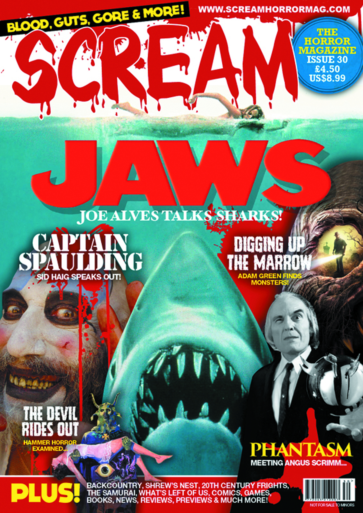 Jaws-crazy with an exclusive interview with Production Designer Joe Alves including some "never before seen" photos from the 1974 movie set! There's also interviews with Angus Scrimm who played the legendary Tall Man from the