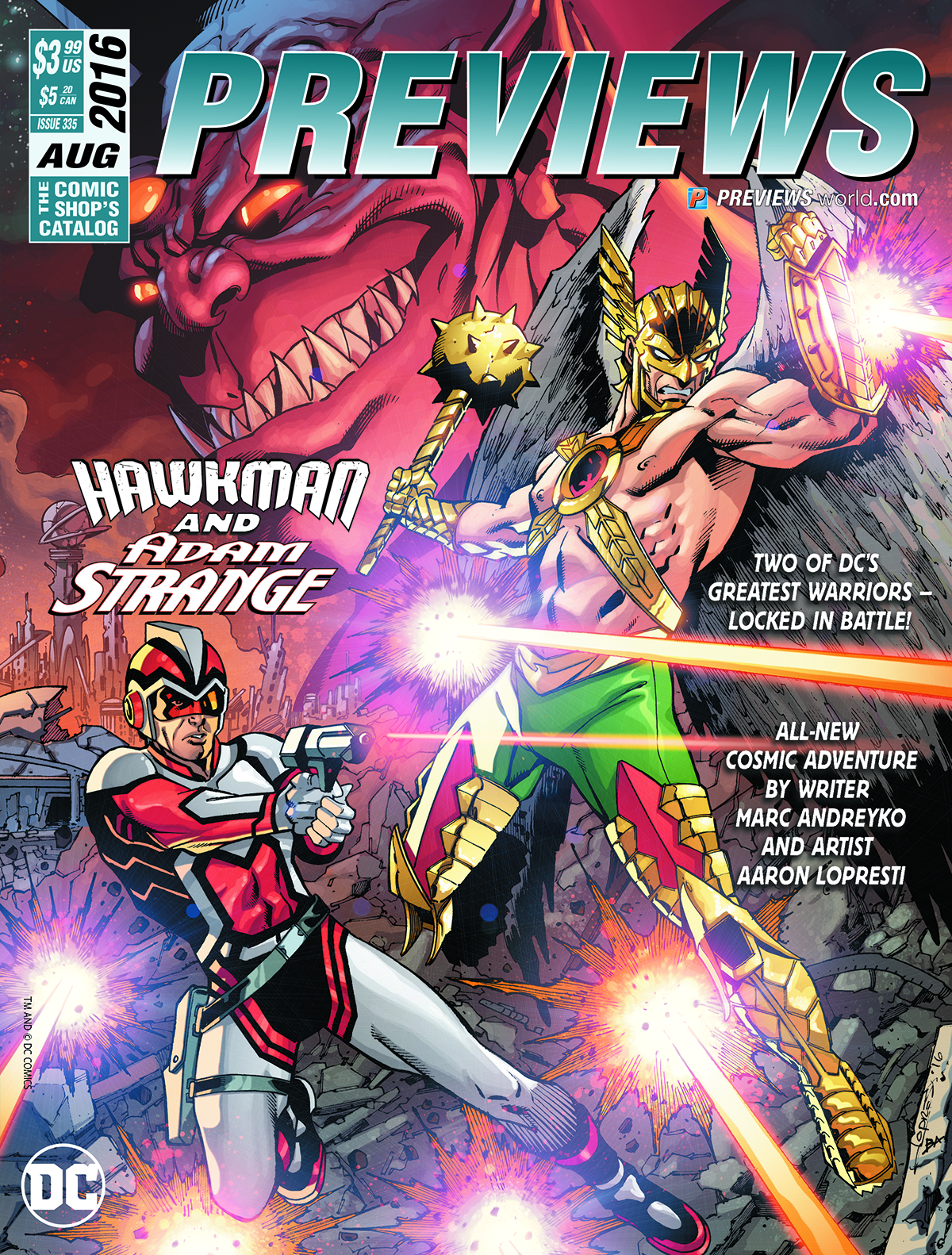 PREVIEWS is your ultimate guide to comics, graphic novels and pop-culture merchandise available from your local comic book shop... revealed up to 2 months in advance! Read detailed product descriptions and storylines for hundreds comic books and graphic novels from the top comic book publishers; see the coolest toys and pop-culture merchandise on Earth; plus PREVIEWS Exclusive items you'll find nowhere else! It's a great monthly read to find out what's at comic shops! This August issue features items scheduled to ship in October 2016 and beyond.