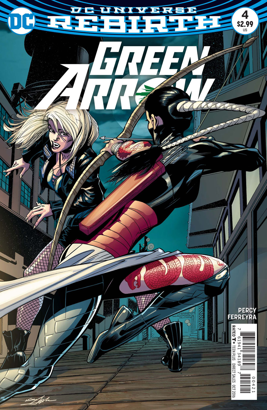 "The Death and Life of Oliver Queen" part four! Black Canary steps through the deadly gates of Inferno, the global super-villain answer to Fort Knox, to discover the truth behind the destruction of Oliver Queen's life, fortune and reputation. Meanwhile, Seattle's manhunt for the outlaw Green Arrow takes an exhilarating twist when an old frenemy makes an unexpected return.