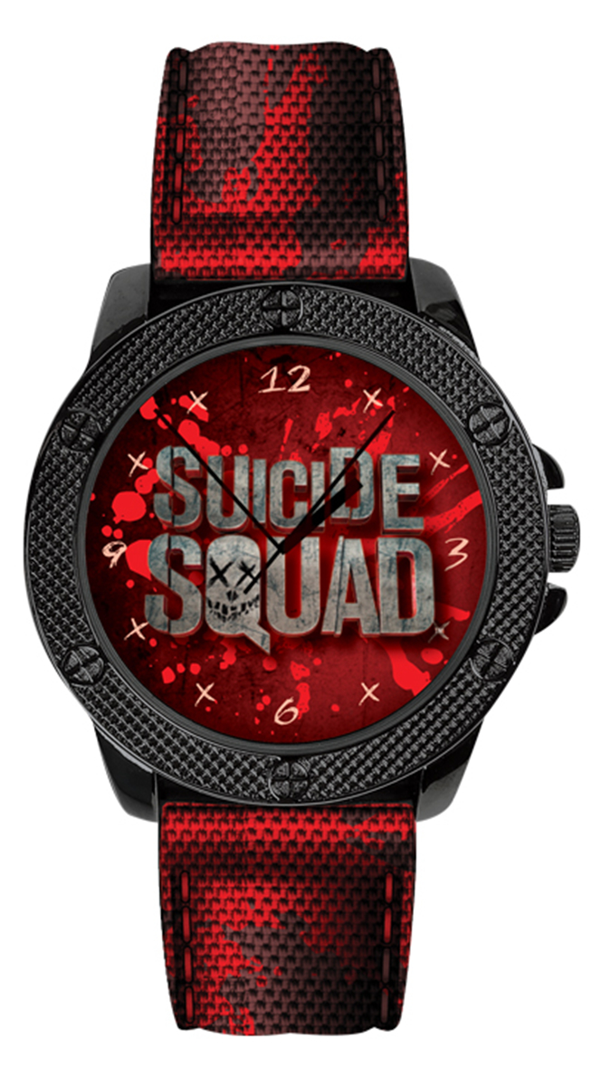 Suicide Squad! It feels good to be bad... Each watch has an alloy case, quartz movement, steel back and red-spattered canvas strap, and comes in its own collector's tin.