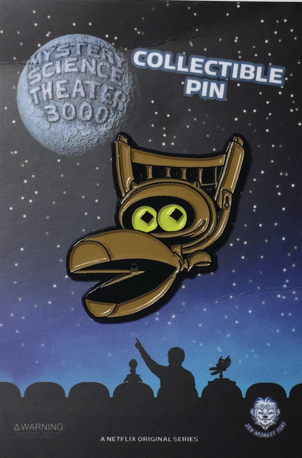 It's Crow! or Tom Servo! Well, their heads, anyway! As soft enamel pins for you to absolutely accessorize yourself with. Perfect to place absolutely anywhere and everything. These soft enamel pins based on