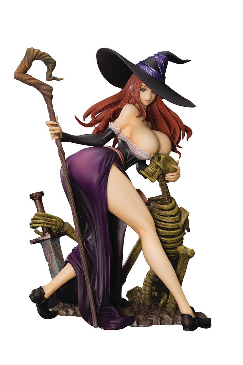 Dragon's Crown comes this highly detailed 1/7 scale PVC statue of the Sorceress. She stands roughly 9" tall and comes with a detailed base in a colored window box packaging.