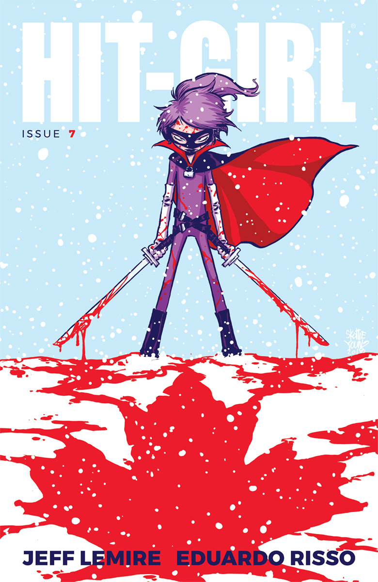 Written by JEFF LEMIRE, a 2018 Eisner Award nominee for Best Writer! Hit-Girl's holed up in a cabin in the woods, nursing bear-trap wounds and recovering from a fall through the ice. But Billy Baker and his gang have found her hideout, and these local hunters can track anything in the snow. How many can Hit-Girl slay before the Mounties show up?