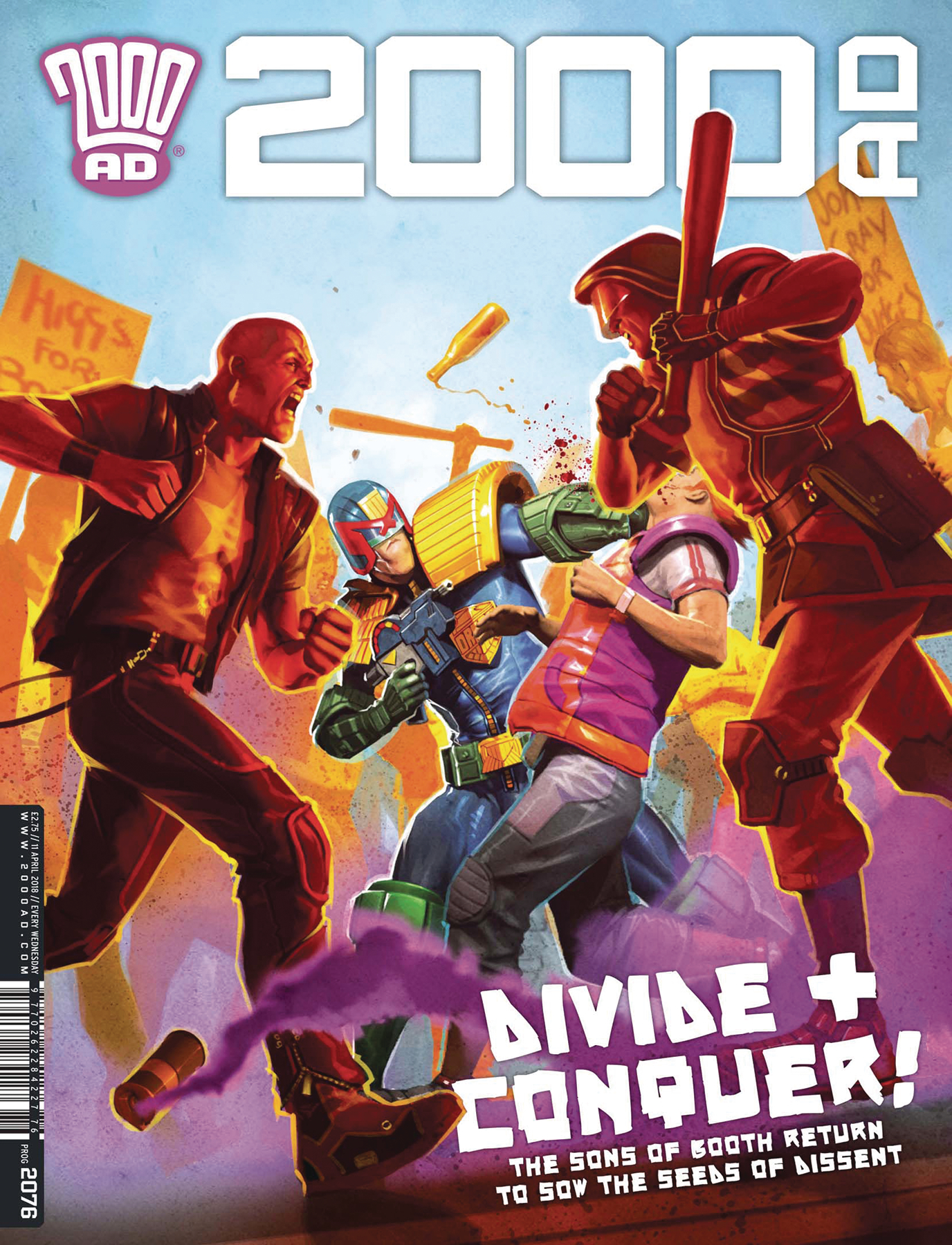 Incredible SF action from the Eisner-nominated UK anthology! Judge Dredd tackles a gang of superpowered perps in "Better Class of Criminal"; the ETC cops suffer tragedy in