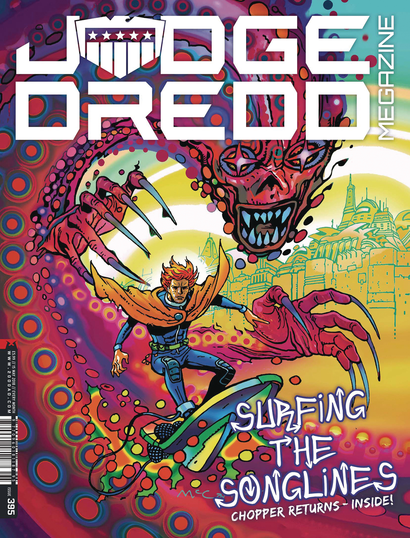 More action and adventure in the future-shocked world of Judge Dredd! The lawman tackles smart-drug addiction on a university campus in "Brain Drain"; Devlin Waugh's date night turns surreal in "Kiss of Death"; "The Returners" face the final reckoning by; Chopper battles to save Oz in "Wandering Soul", and there's the climax of the special Strange Brigade story that leads into this year's must-have action-horror videogame. Plus the usual interviews and features - and in the bagged supplement this month,