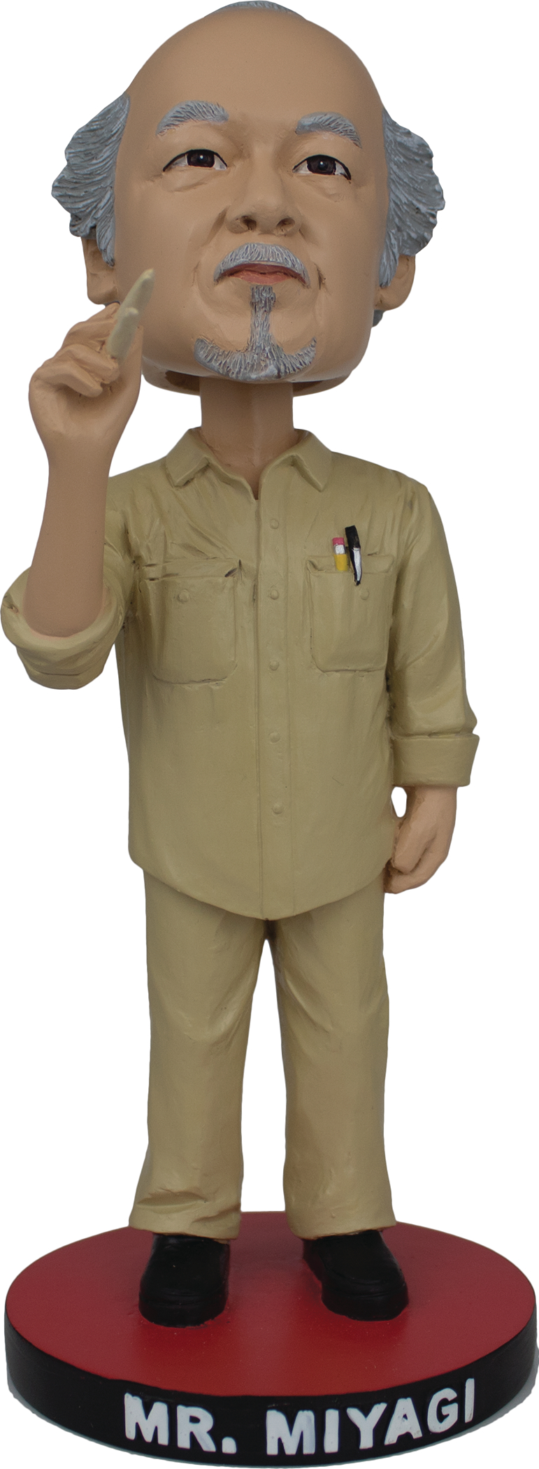 Mr. Miyagi bobblehead on your desk to remind you of the classic teen karate movie on it's 35th Anniversary! Limited to 1,984 pieces.