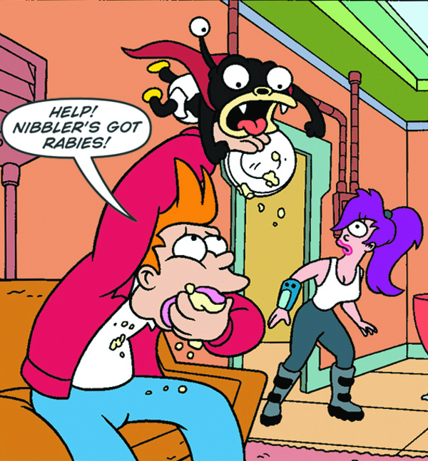 Leela takes Nibbler to the veterinarian and gets some shocking news...her cute little Nibblonian has worms - worms that cause wormholes. Nibbler's disgusting ability to open portals to new worlds at the drop of a... well, you know, is at first considered a blessing, until the two-way wormholes put the DOOP in deep doo-doo!