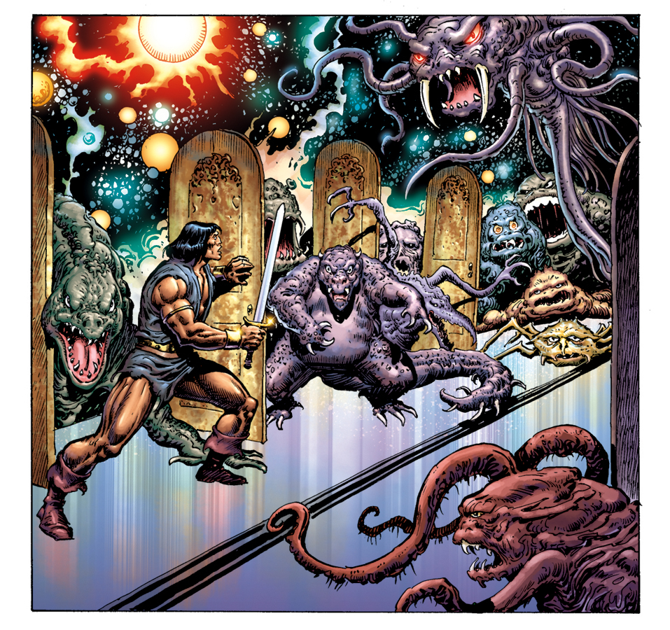 Following a legendary writer like Roy Thomas is no easy task, but J.M. DeMatteis (Justice League, Spider Man: Kraven's Last Hunt, Moonshadow) found himself doing just that when he collaborated with writer Len Wein on Conan #116-and then became the book's new regular writer with Conan #118! Dark Horse's latest Chronicles of Conan collects six issues from the regular series run, as well as the second Conan King-Size Annual. Readers will marvel at the strange new landscapes, creatures, and magical foes that DeMatteis brought to the series, while still getting a Roy Thomas fix with his "Phoenix on the Sword" adaptation from Conan Annual #2.