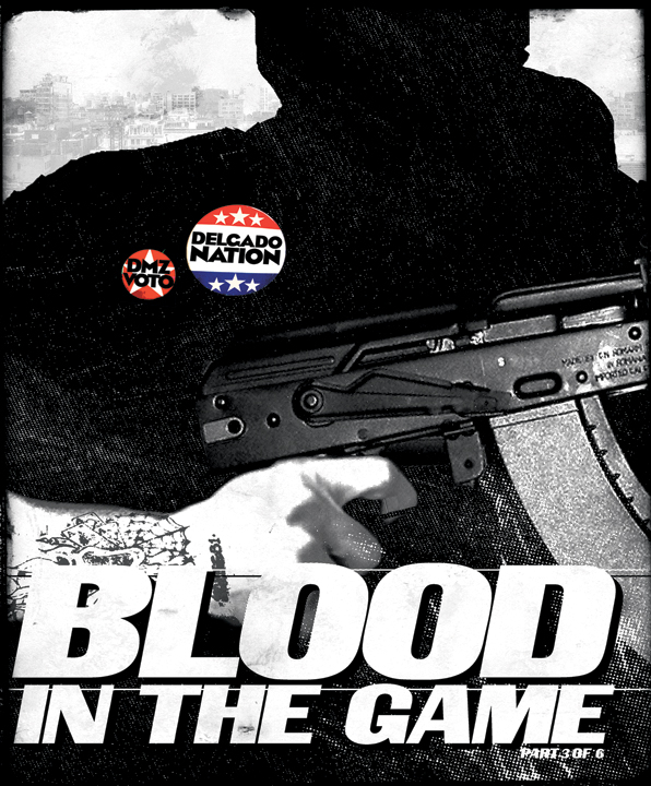 "Blood in the Game" Part 3. As the pro-Delgado movement expands, the P.R. firms of both the United States and of the FSA attempt to get the revolutionary on their sides. But Delgado has plans of his own.