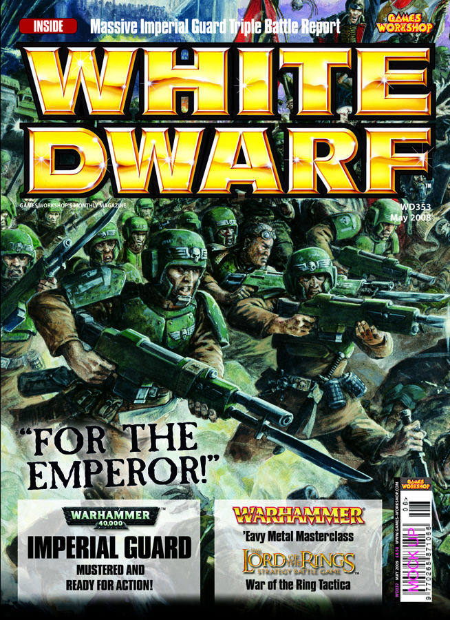 Imperial Guard Codex with new releases including plastic Command Squads, Valkyries, Ratlings, Commissars, Advisors, and Psykers. Plus Imperial Guard design notes, a battle report, sprue diagrams, vehicle modeling workshop, painting tips, and more!
