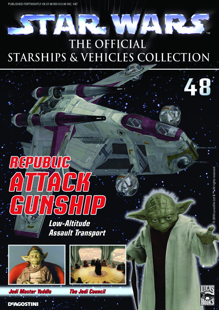 The Star Wars: The Official Starships and Vehicles Collection Magazine brings fans superbly detailed, painted metal models of the most amazing starships and land vehicles from George Lucas' mythic Star Wars films. Each comes with a copiously illustrated magazine that relates the history of the vehicle, its pilots or crew, and full technical specifications. Readers will also uncover information on the other fascinating craft from the Expanded Universe of the novels and comics, plus the inside story on the making of the films. Choose from the Sith Speeder (#21), Imperial Shuttle (#22), the Rebel Transport (#47), and the Republic Gunship (#48).