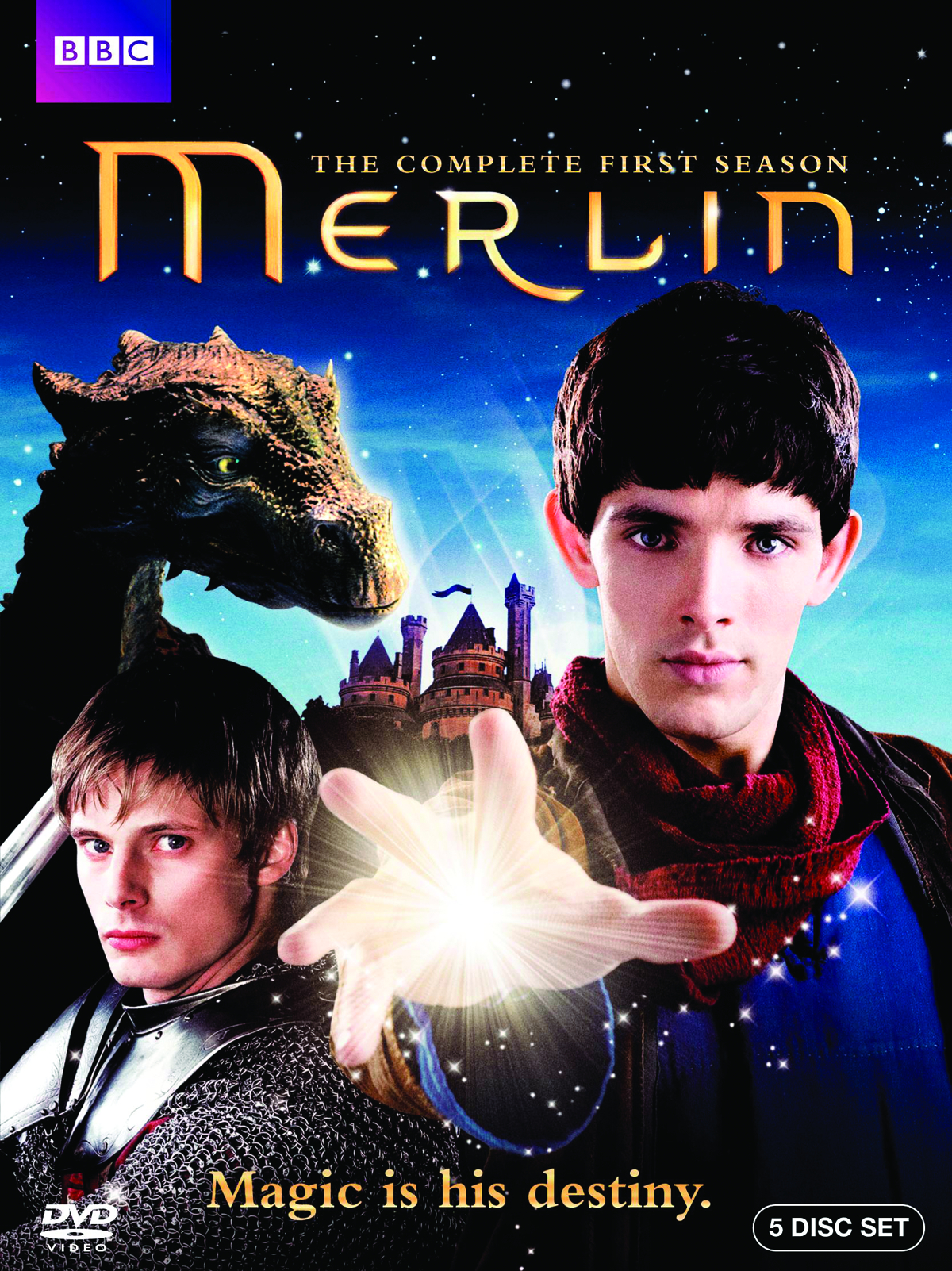 From BBC Worldwide! The kingdom of Camelot is a realm of legendary beasts and mysterious peoples. In this dangerous world, magic has been banned by the ruthless tyrant, Uther Pendragon. Merlin, born with extraordinary magical powers, is taken as an apprentice to the court physician Gaius and as manservant to the headstrong Prince Arthur. However, with the practice of magic punishable by death, Merlin must take care when and where he uses his talents. The Great Dragon, who lies imprisoned under the castle, informs Merlin that his gift has a purpose - to aid him in his destiny to protect Prince Arthur, who will one day lead a great and just kingdom. But Merlin has already discovered that following his destiny is not always an easy task.