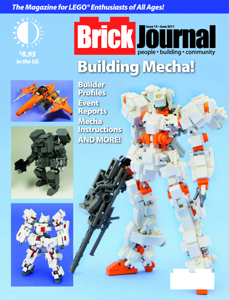 BrickJournal takes a look at the LEGO Mecha genre of building, especially in Japan! Feature editor Nathan Bryan will be spotlighting mecha builders such as Saito Yoshikazu, Takayuki Torii, Sukyu and others! We'll also talk with Brian Cooper and Mark Neumann about their mecha creations. If you wanted to learn how to build mecha, we'll have instructions by Saito Yoshikazu! All this, plus our regular columns on minifigure customization, building, event reports, our step-by-step "You Can Build It" instructions, and much more.