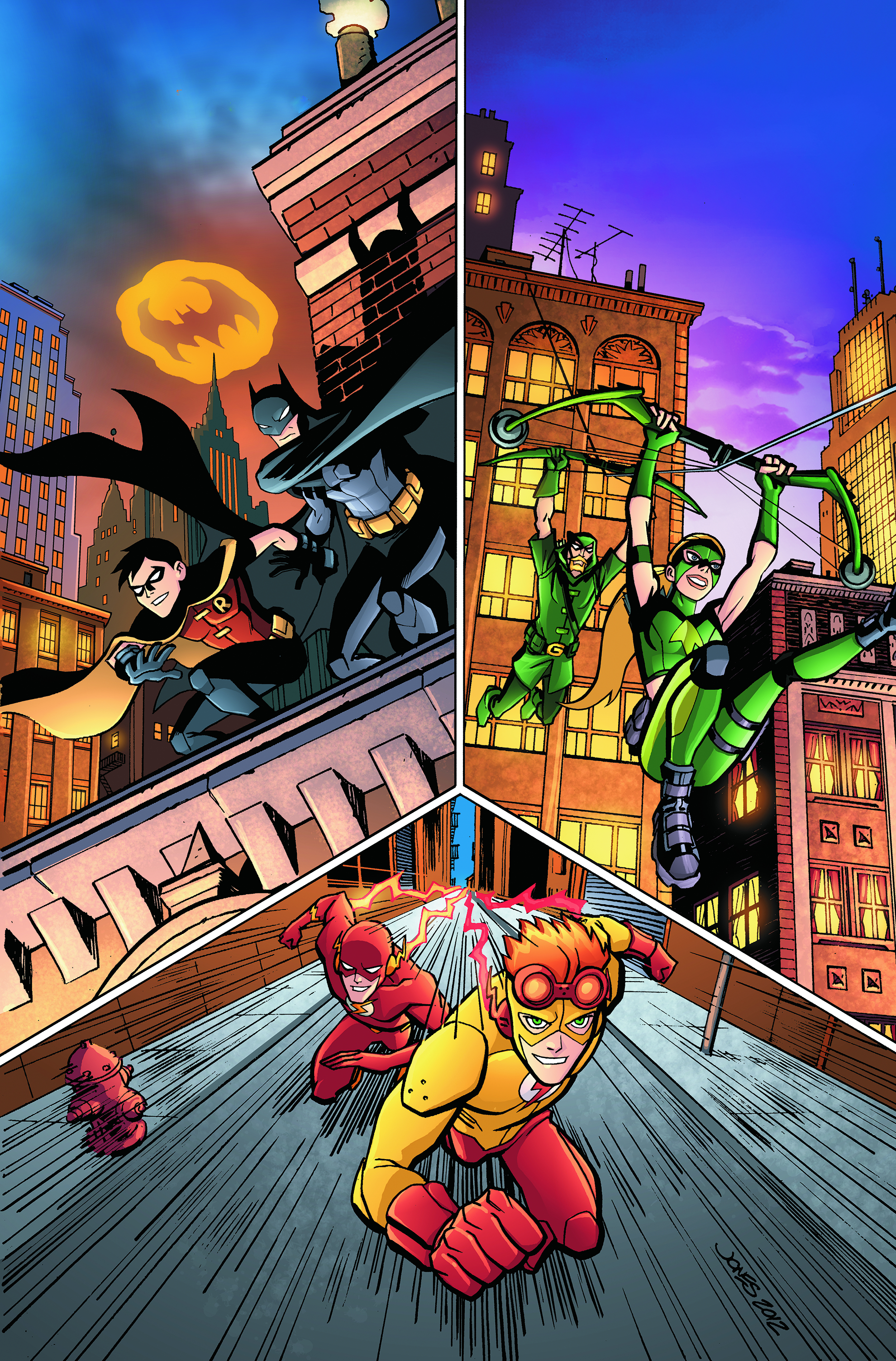Robin, Kid Flash, and Artemis fight crime with their adult counterparts!