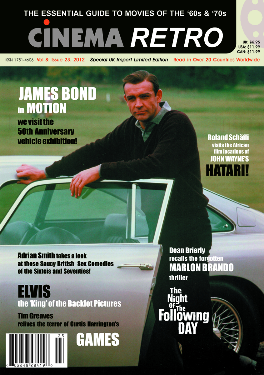 Hatari!, and take a look at how the Elvis Presley films were shot mainly on the backlot. All of this, plus a tribute to those saucy and racy British sex comedies of the 60s and 70s, and an in-depth look at the forgotten Marlon Brandon crime thriller