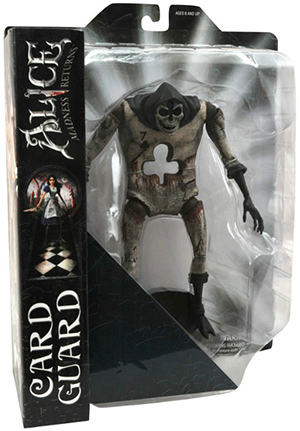 Alice has returned to Wonderland, but the magical world is not as she left it, and the realm's residents are not always as she remembers them. At the height of her power, the Queen of Hearts commanded an army of Card Guards, dedicated soldiers created from ordinary playing cards. But now, in her ruined kingdom, her guards have deteriorated into tattered, skeletal versions of themselves, stitched back together to continue their service to their mistress. Based on the new game from EA and Spicy Horse, this assortment of 7"-scale figures is fully articulated and comes in oversized collector packaging. All figures are in scale to each other. Designed and Sculpted by Gentle Giant.