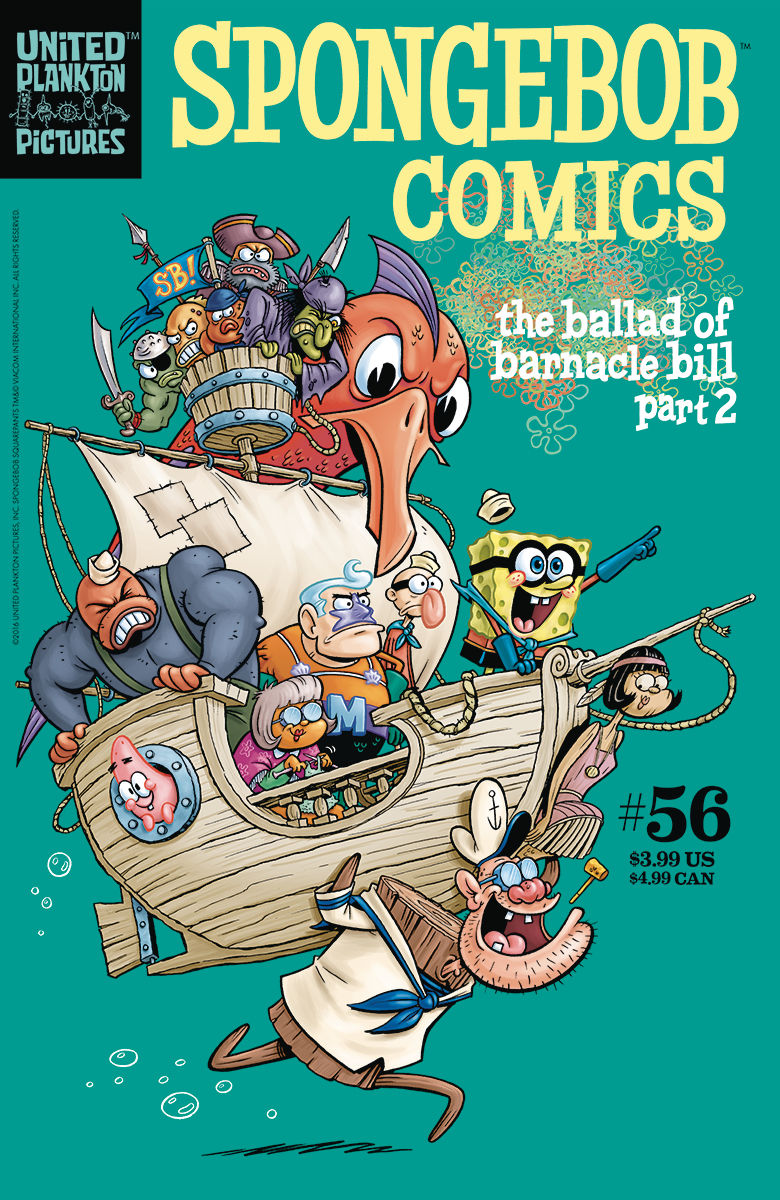 In part 2 of "The Ballad of Barnacle Bill," SpongeBob and the ocean's saltiest sailor, Barnacle Bill, take on the deadly denizens of Rough 'n' Tough Reef-lowlife pirate scum, the sinister White Water Witch, a giant Fish Roc, and the belligerent bully Gangplank Gus! It's a thimbleful of thrilling theater with the excitement of an exploding Segar! Plus: facts about hungry shipworms by Maris Wicks! Gary fights Plankton, by James Kochalka and Hilary Barta! And more!