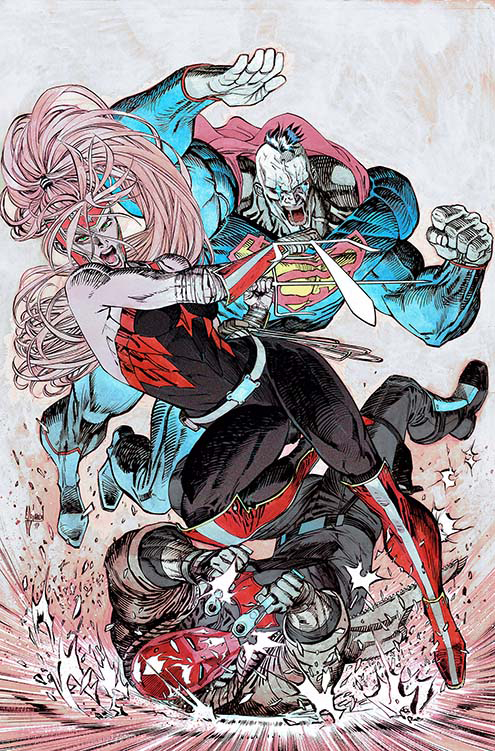"Who is Artemis?" part two! After getting shot out of the sky by the Bow of Ra, the Dark Trinity finds itself stranded and separated in the war-torn country of Qurac. While Artemis squares off against her long-forgotten foe responsible for the Bow of Ra's disappearance, Bizarro comes across a group of innocent refugees looking for a savior. Meanwhile, Red Hood faces a crisis of conscience when he's forced to relive the trauma of his own death and comes face to face with his greatest enemy-himself!