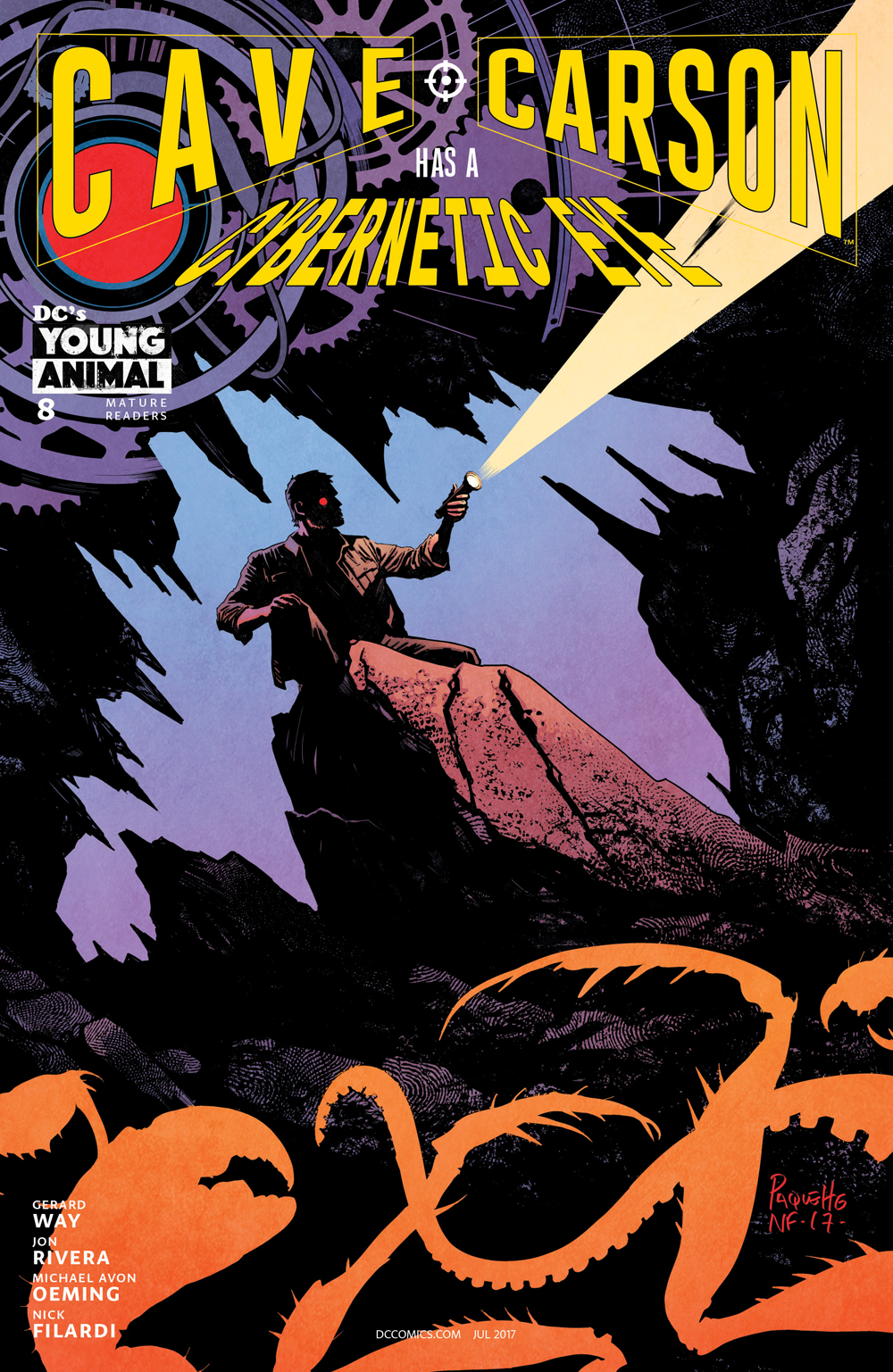 Cave Carson has a cybernetic eye! Or, more accurately, he had one. After the fallout with the Whisperer and his cult in issue #6, the eye has run amok-and it's up to Cave and the rest of Team Carson to find it. What's that cognizant ocular computer chasing, anyhow?