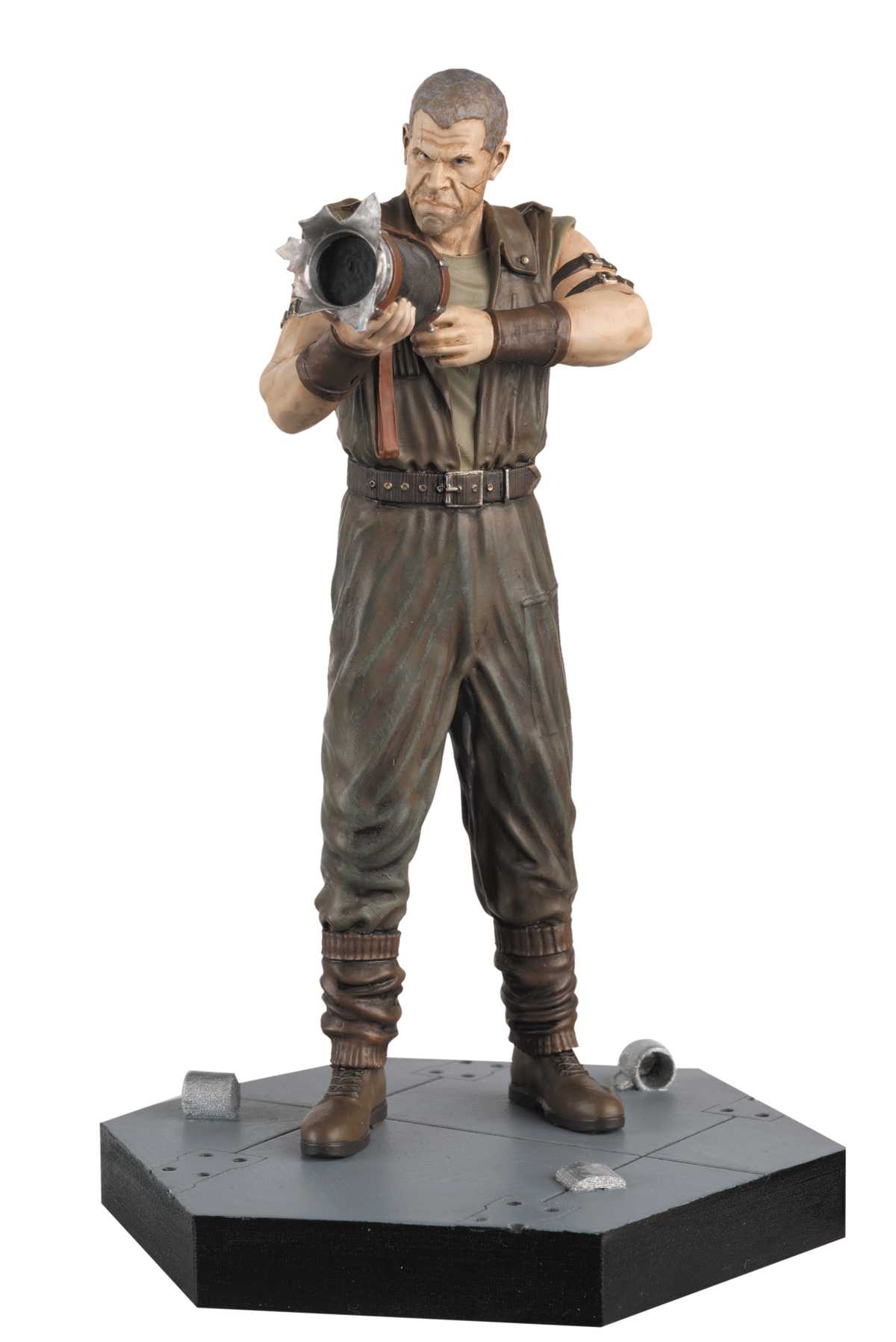 Ron Johner is an immature and aggressive bully paid to kidnap human subjects for use in lethal experiments. He's also brutally honest, fiercely loyal, and exactly the kind of guy you need during an alien outbreak. Johner, portrayed by Ron Perlman, is one of the few people to escape the xenomorph infestation on-board the USM Auriga in 1997's Alien Resurrection. Your figurine shows the mercenary moments after unleashing his improvised weaponry on some unsuspecting security agents trying to take down him and his crewmates.